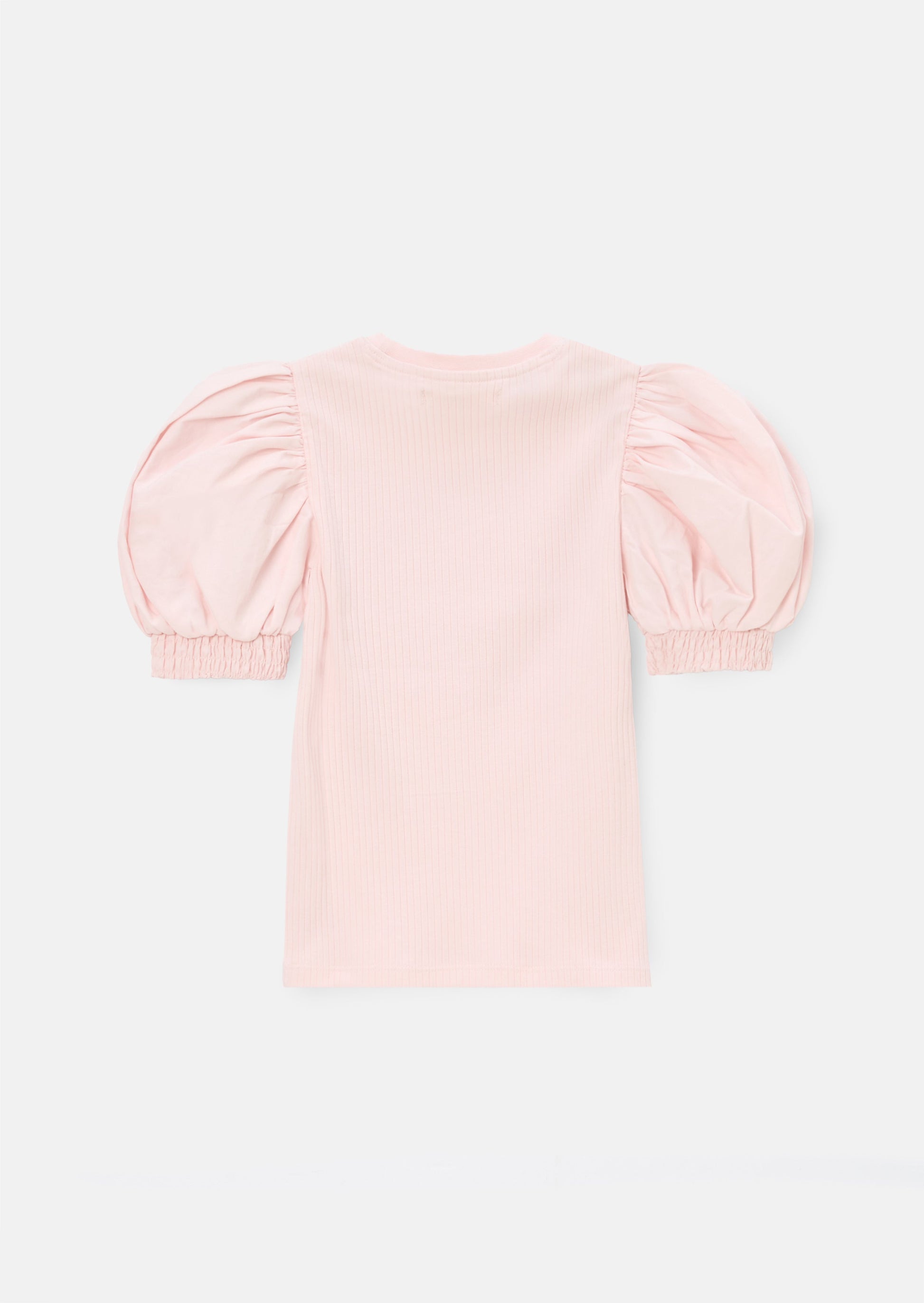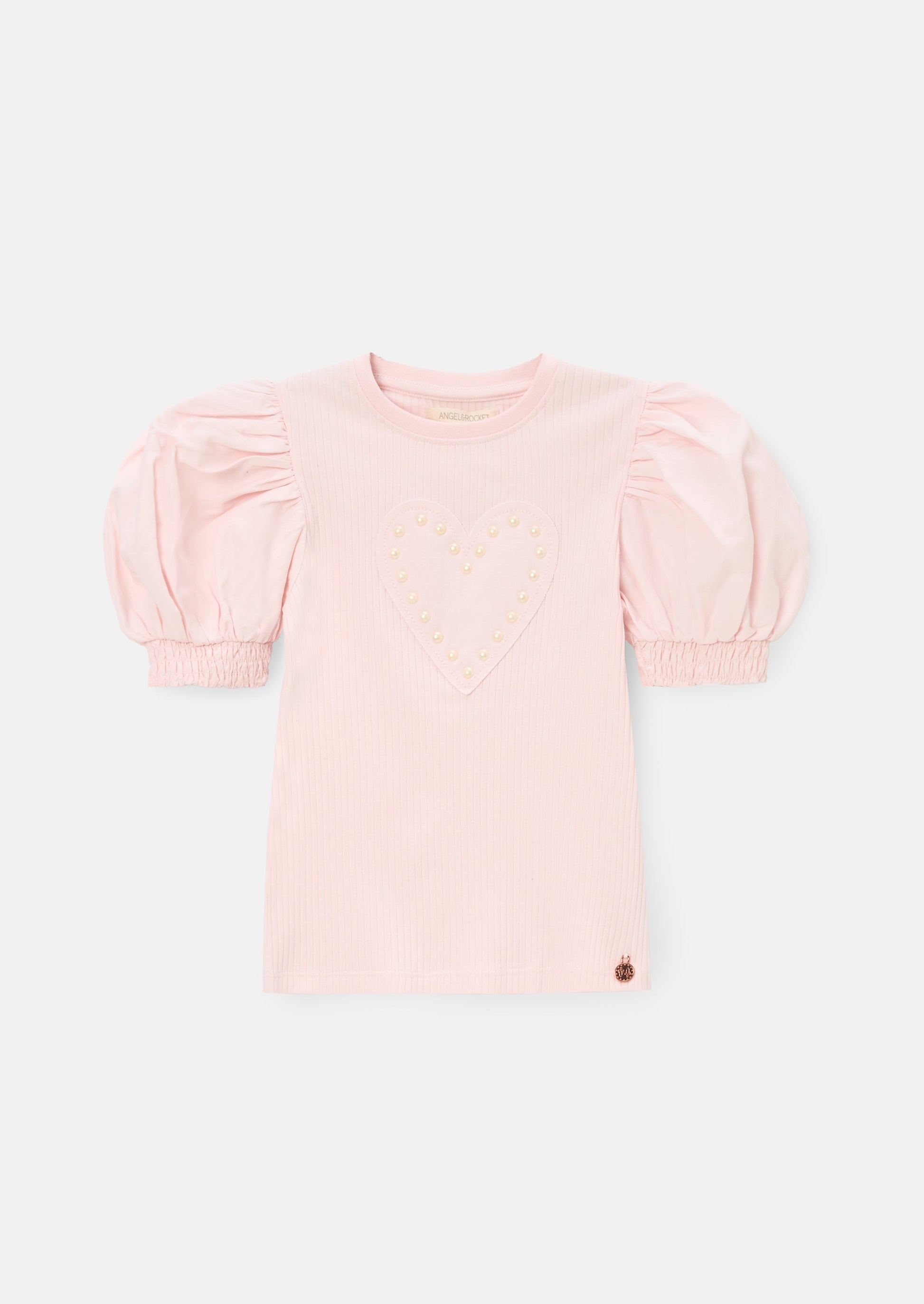Combine woven sleeves with a rib jersey body, add a pearl heart motif and you have the perfect blend of comfort and style. Wear with denim, skirts, or relaxed trousers. A true wardrobe staple!