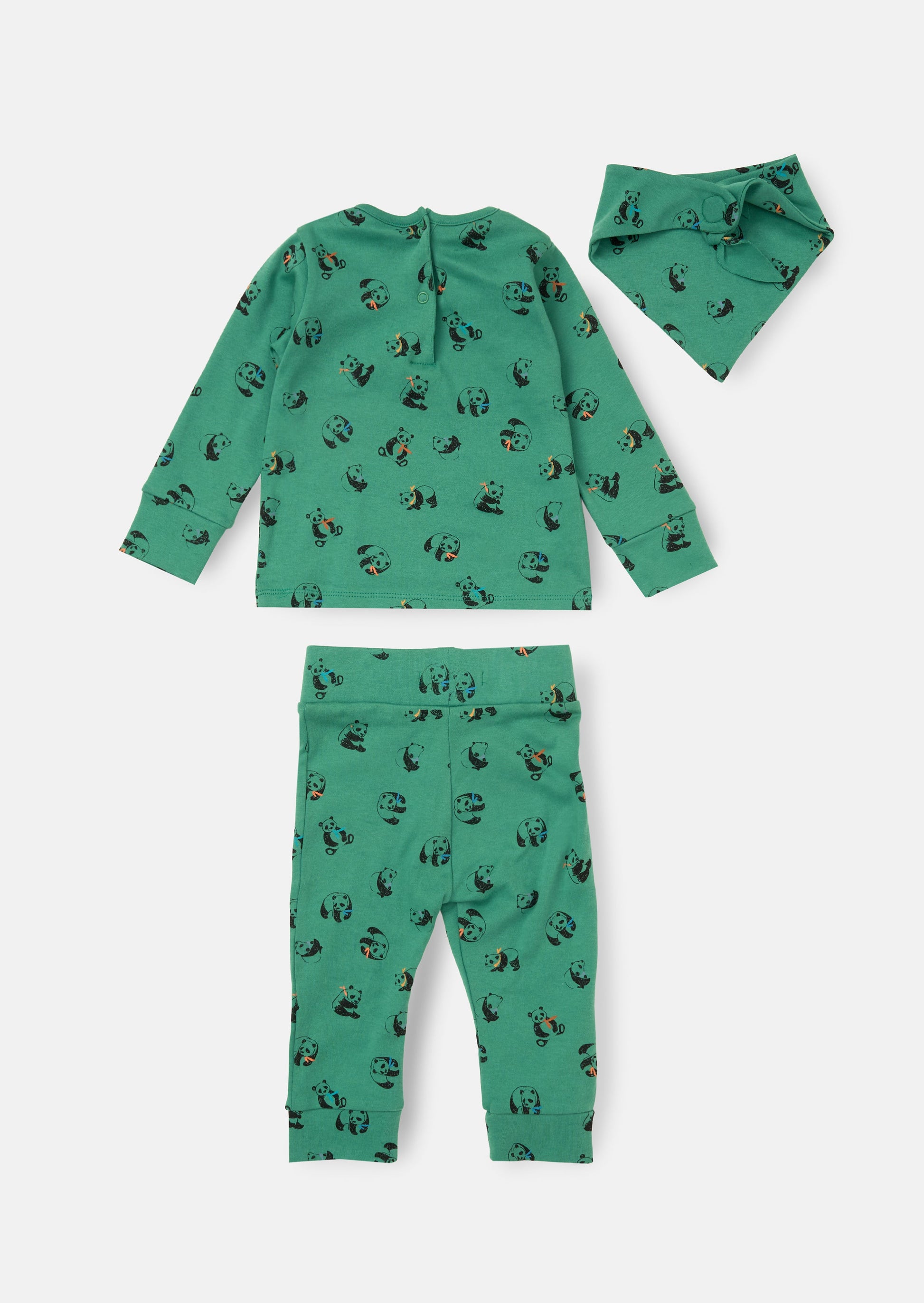 Get ready to roam, crawl, and snuggle in our irresistibly cute Panda Top & Legging Set. This cozy green outfit is sprinkled with adorable panda prints for extra charm—and it even comes with a matching scarf to keep tiny necks warm on breezy days!