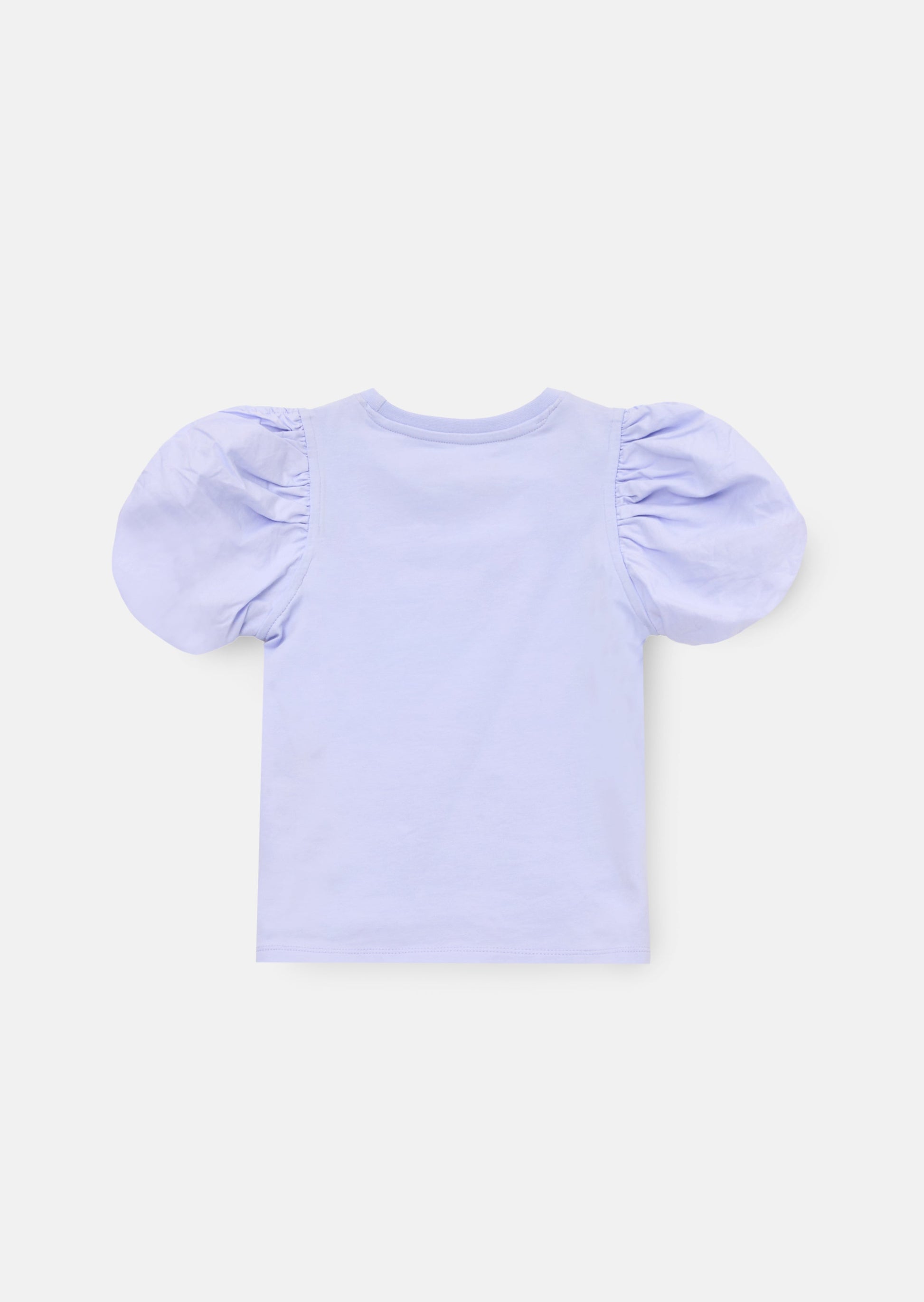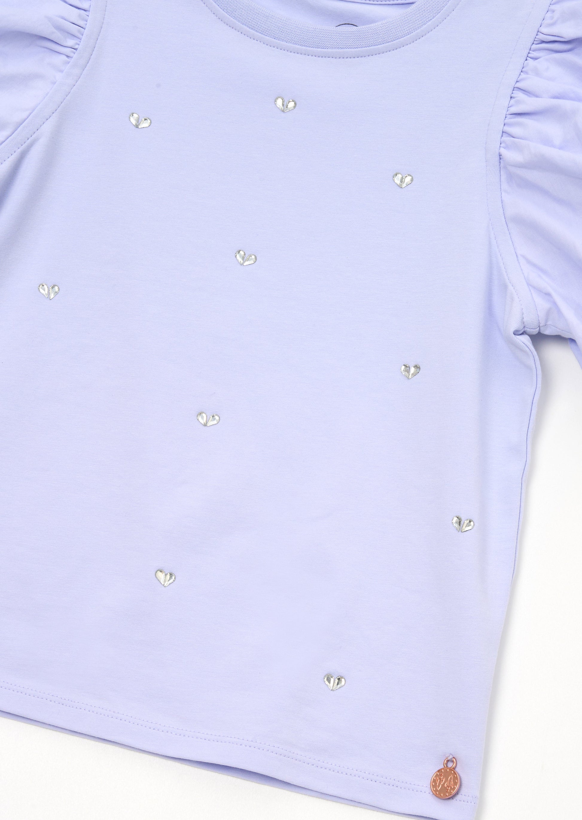 For the girl who wants to shine! Introducing our new super soft jersey tee with woven blouson sleeve, scattered with diamantes in a scrumptious lilac hue.