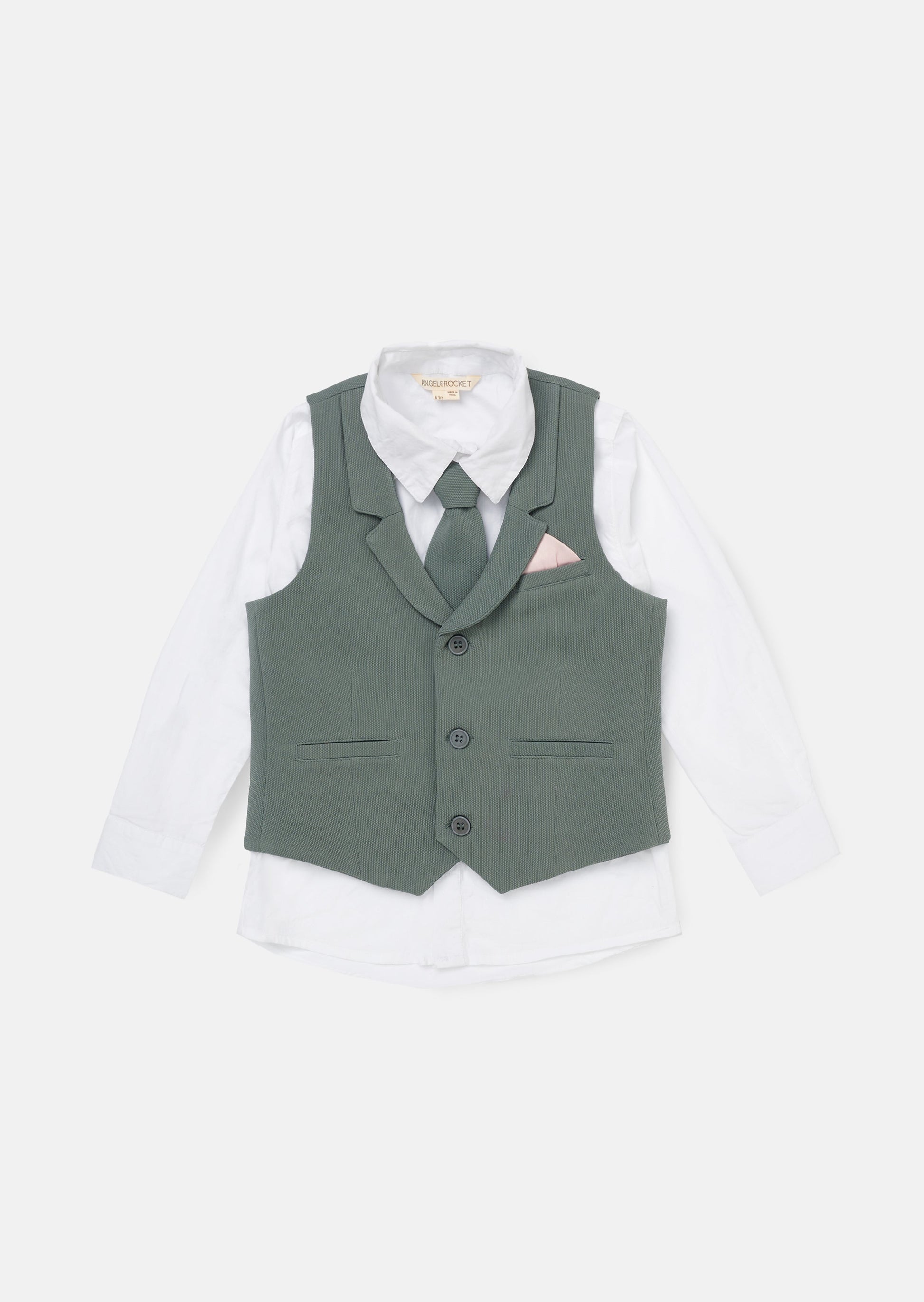Strike a pose! Your little man will look incredible in our three-piece occasionwear set, complete with an on-trend soft green textured waistcoat, crisp white shirt, and smart tie. Team with the matching trousers or shorts to complete the look.