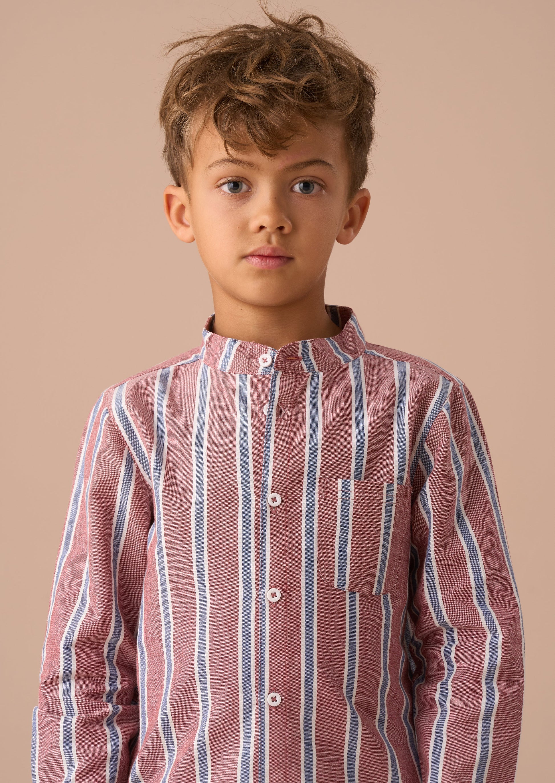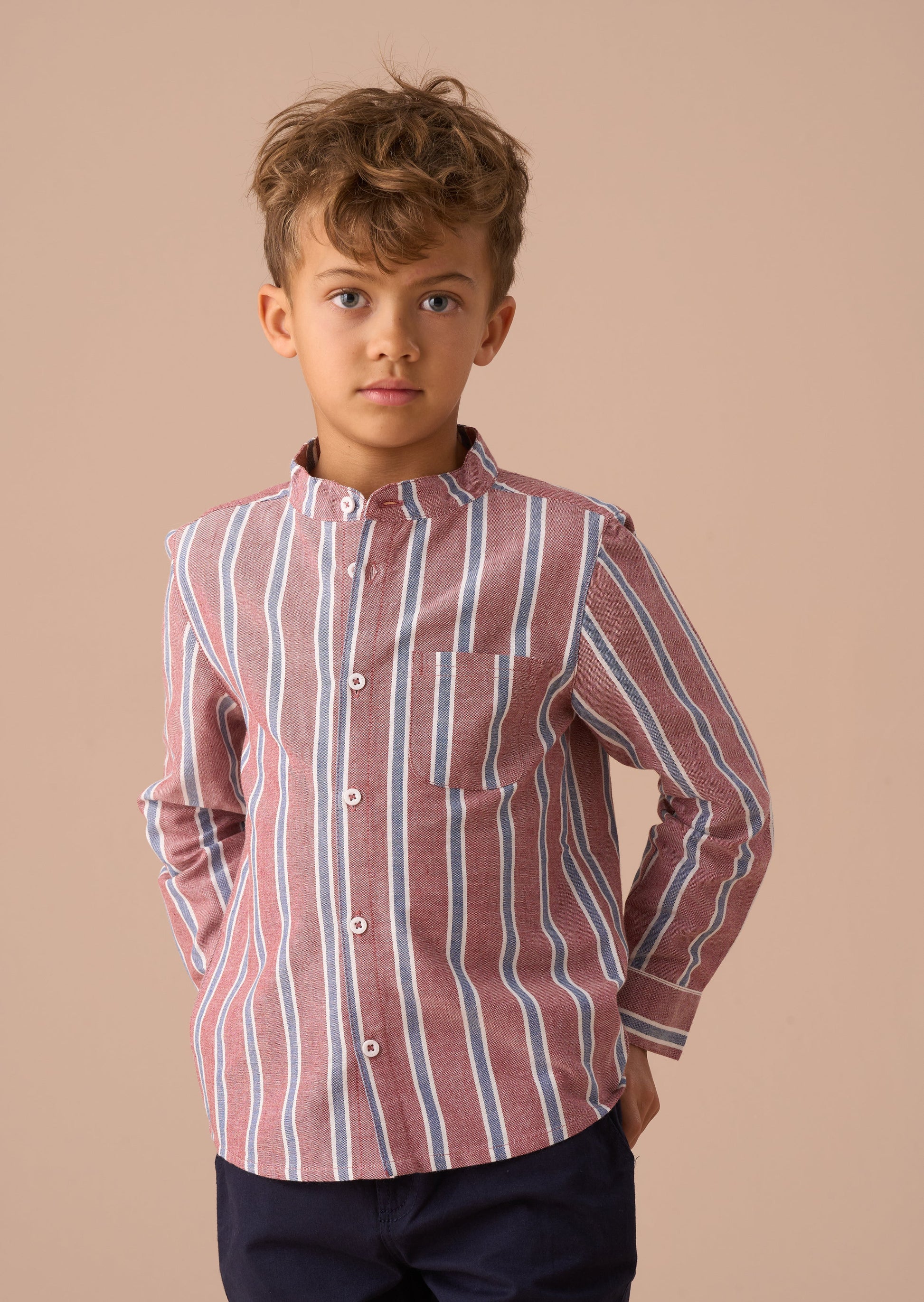 Earn your stripes! Our new stripe shirt is crafted from classic Oxford cotton to give a smart profile. Regular cut with a mandarin collar in a fresh maroon colourway. Pair with our textured chinos for a sharp, stylish outfit.