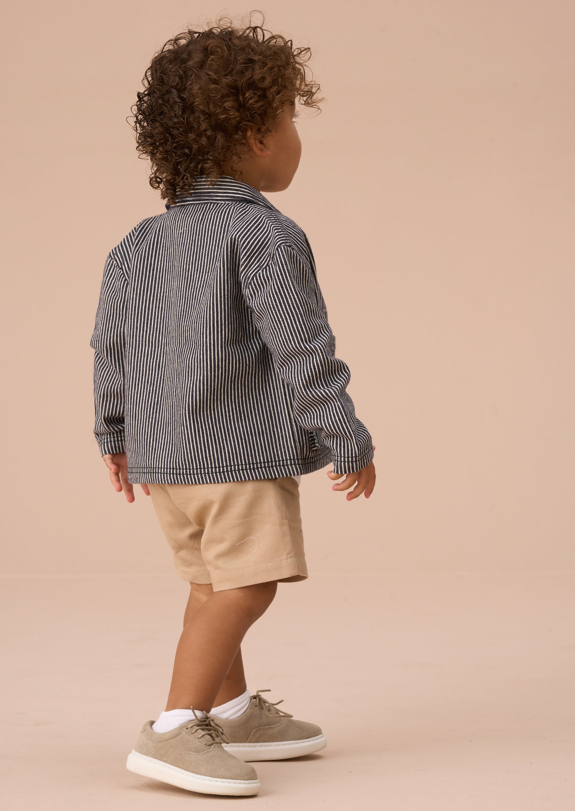 Earn your stripes! This casual jacket is a summer wardrobe essential, crafted from textured stripe fabric for effortless summer vibes. It also comes in a big brother version - perfect for a smart sibling duo!