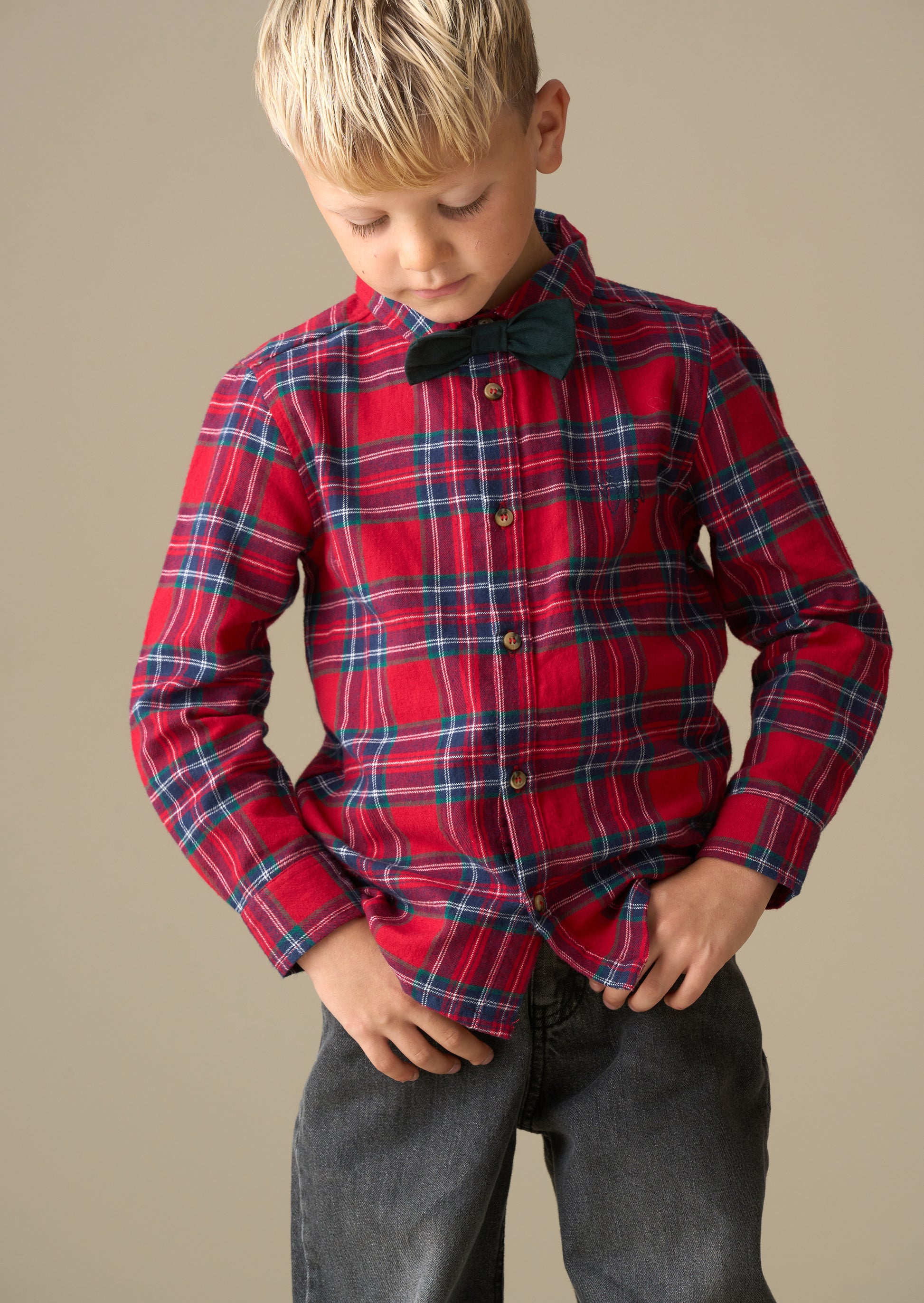 Check it out! This is the ultimate check shirt upgraded A&R style. Made from super soft fabric in festive colours finished perfectly with a dapper bow tie. It's a MUST for your Christmas party wardrobe. Available in little brother sizes.
