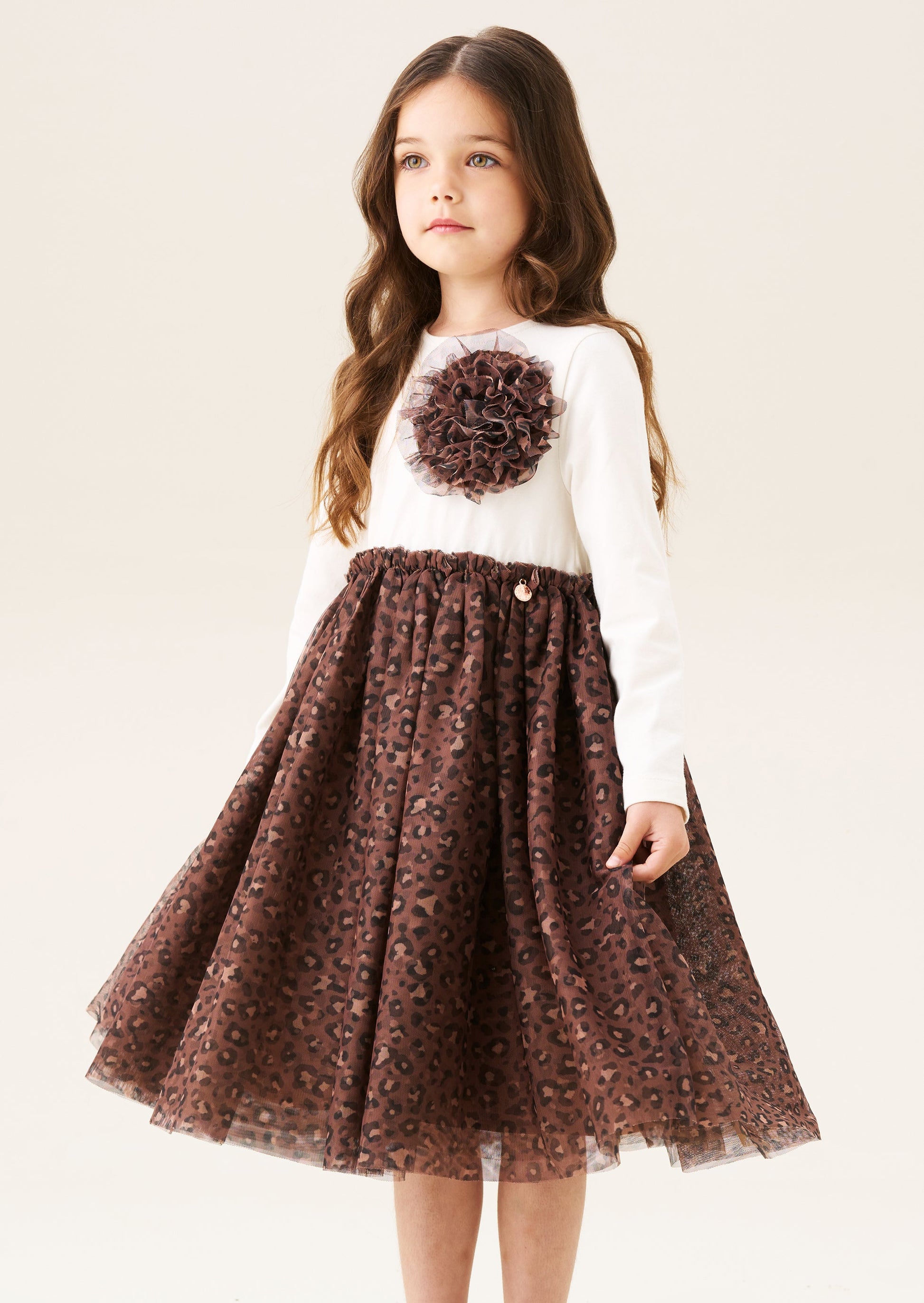 We're wild about this fabulous dress! Super soft bodice with a showstopping corsage, and a sumptuous skirt crafted from layers of soft animal print mesh. Shop the little sister version for an adorable matching duo!