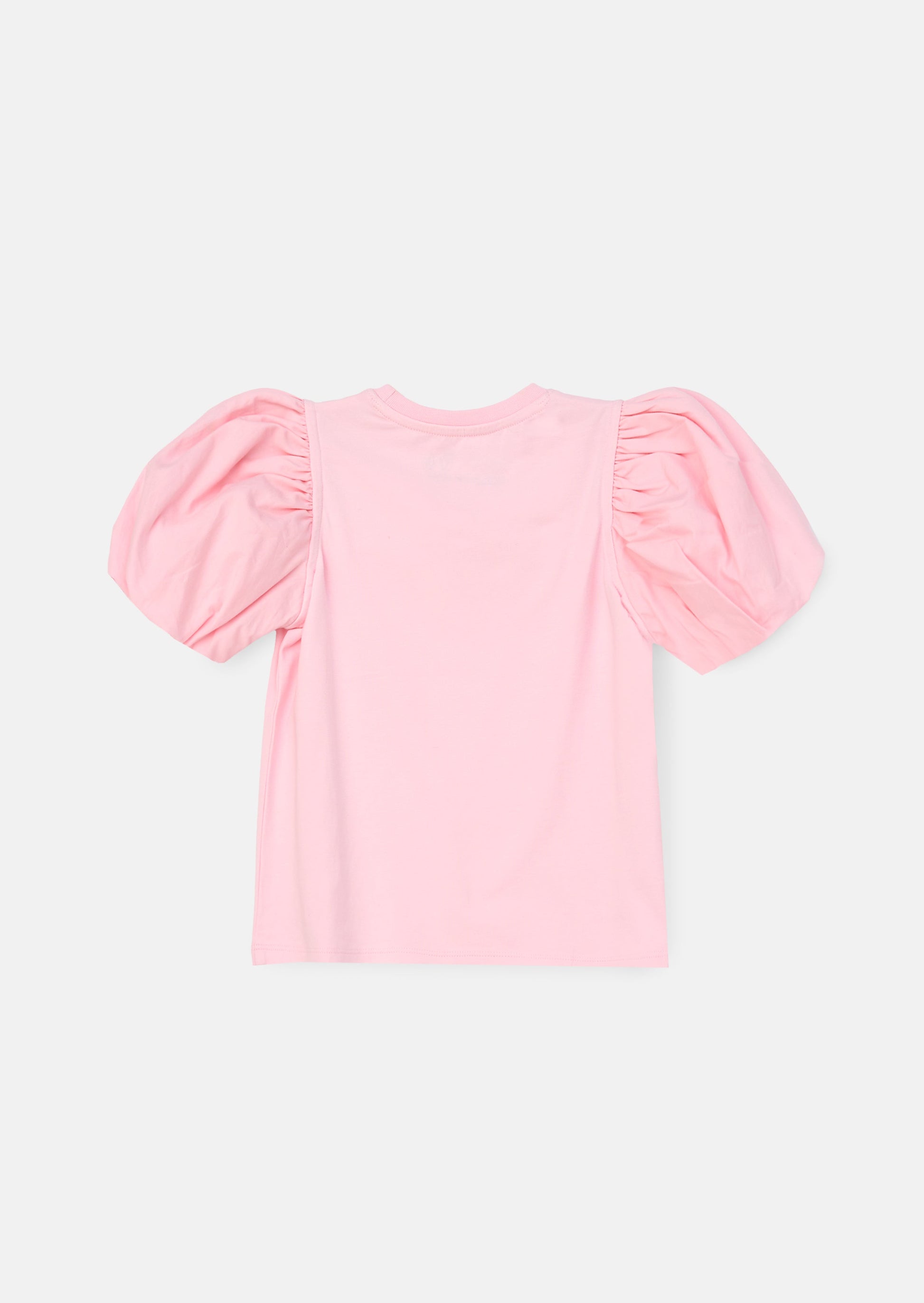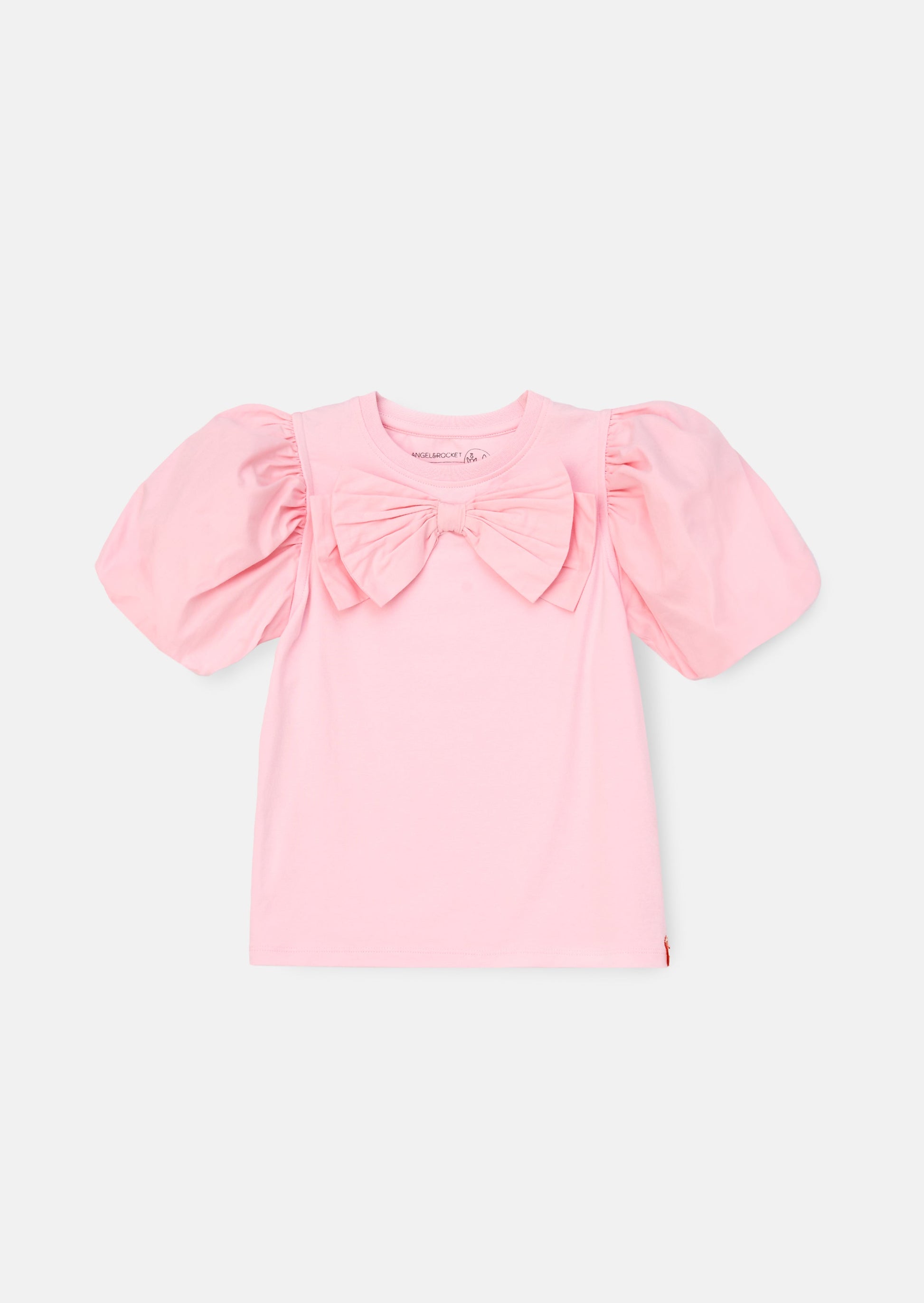 The cutest tee you ever did see. Super soft cotton jersey in pretty pink with a sweet woven puff sleeve and finished with an oversize bow. A must-have for any wardrobe, it pairs perfectly with everything from skirts to denim. Fab-BOW-lous!
