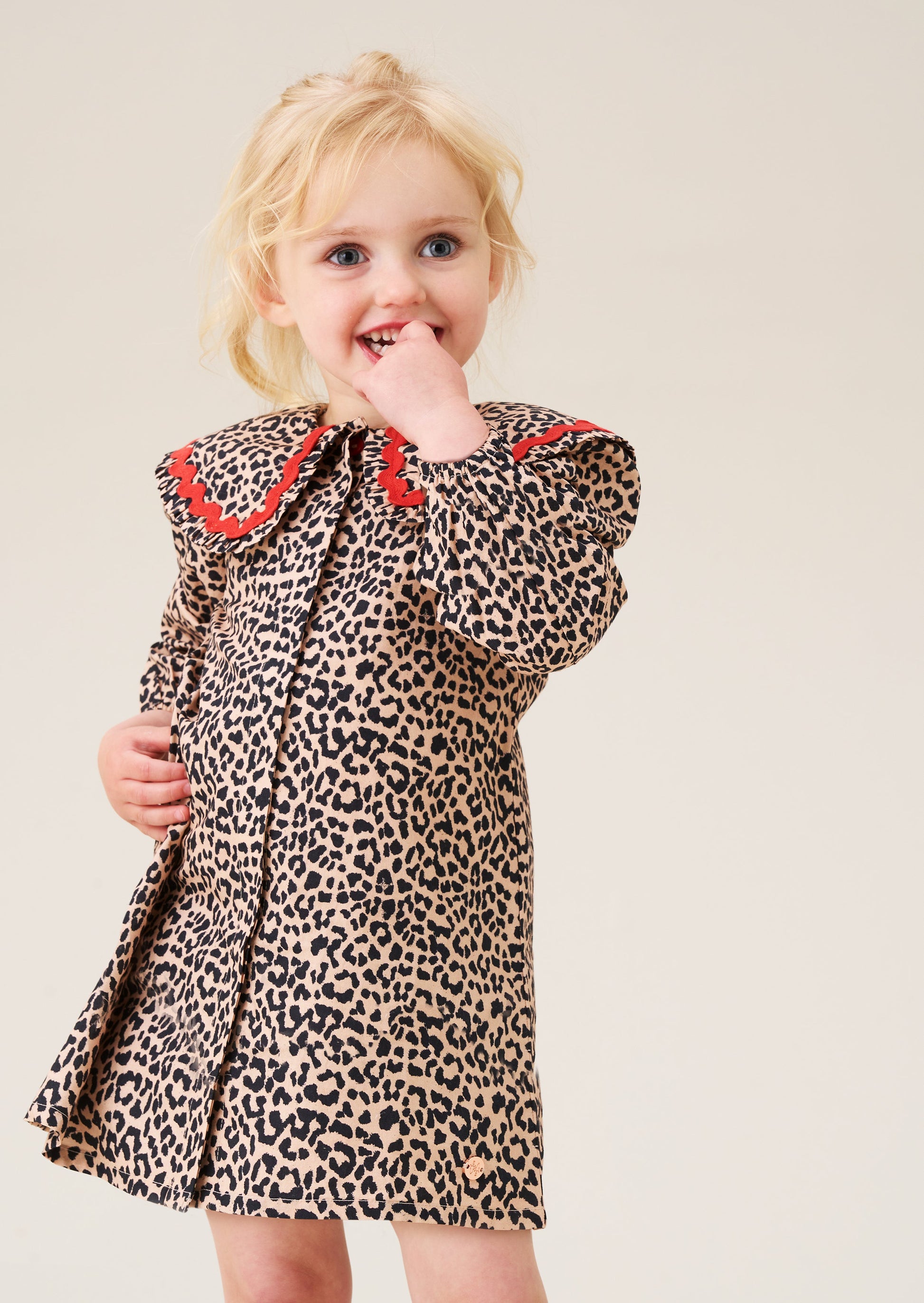 We don't like to have favourites, but… we're in LOVE with this set! This adorable dress and bloomers combo features bold leopard print with a statement oversized collar and glorious red ric-rac trim. Don't forget to check out the matching big sister blouse!