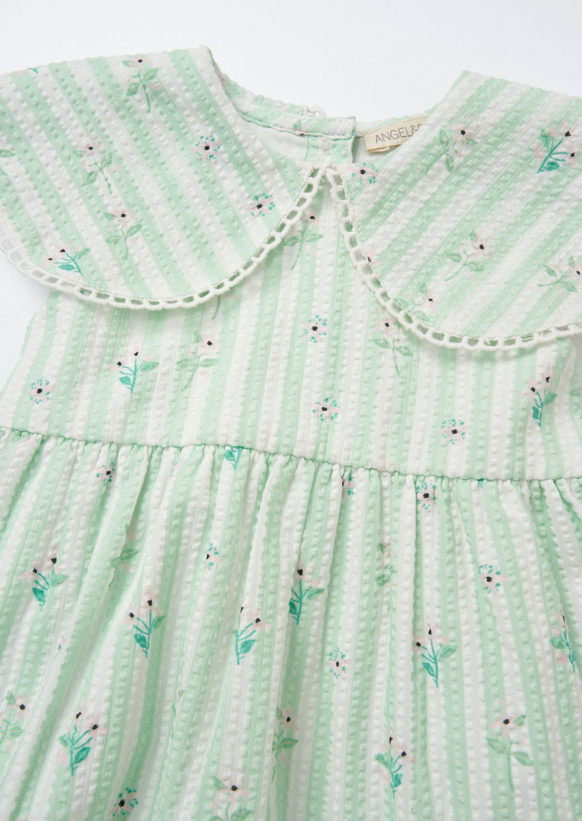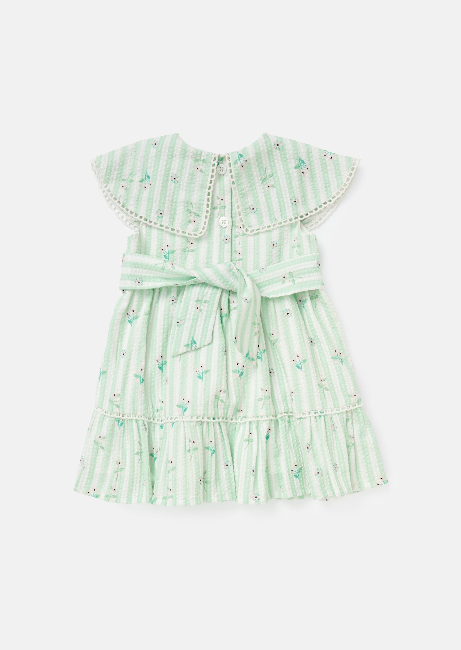 It's 'mint' to be! Crafted from pretty striped seersucker fabric and scattered with an intricate floral design, this dress is sooo pretty! The floaty skirt adds an extra touch of charm, making it perfect for special occasions and everyday adventures alike. Available in big sister sizes!