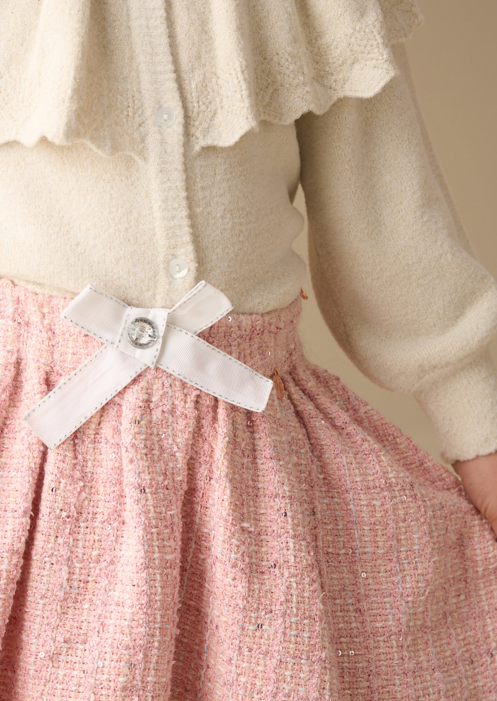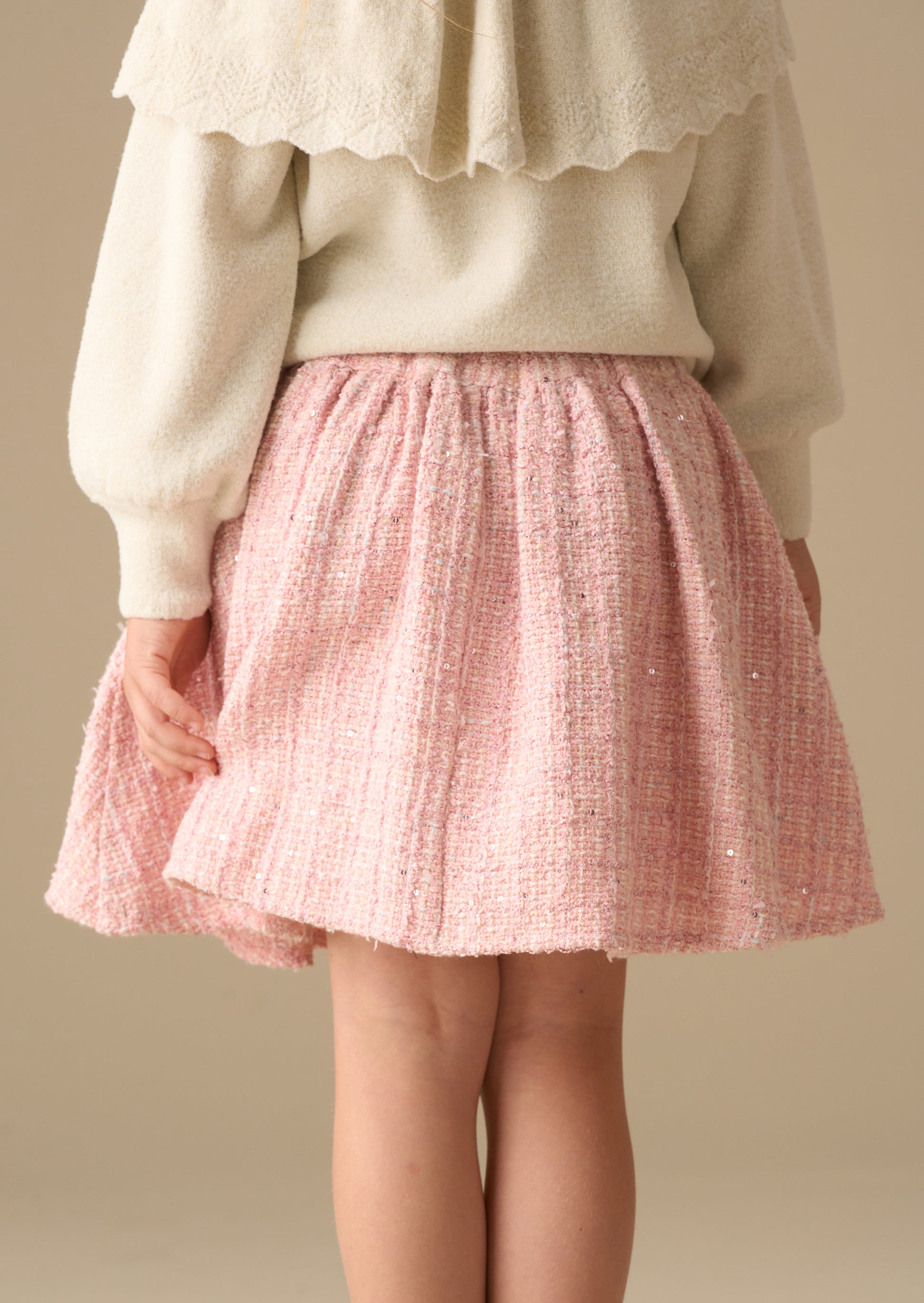 We TWEED to tell you how fabulous this skirt is. Cut into an elegant profile in classic baby pink scattered with sequins that catch the light with every twirl. The epitome of chic meets fun, wear with our matching top for the co-ord of dreams.
