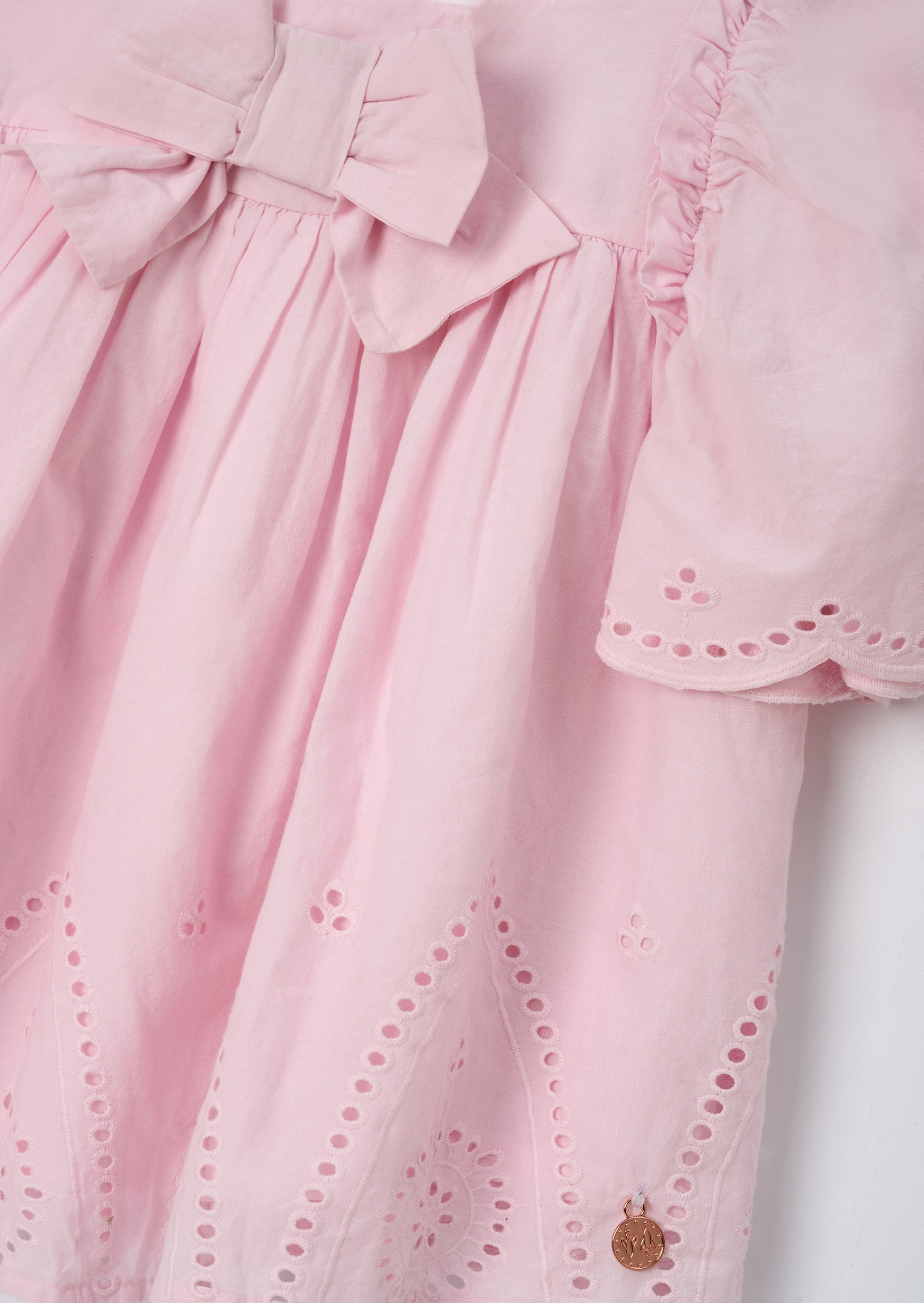 Add a pop of pink to her summer wardrobe! This gorgeous top is made from lightweight fabric with intricate embroidery and a playful swing shape. Finished with a sweet bow detail at the neck, it's sooo cute!
