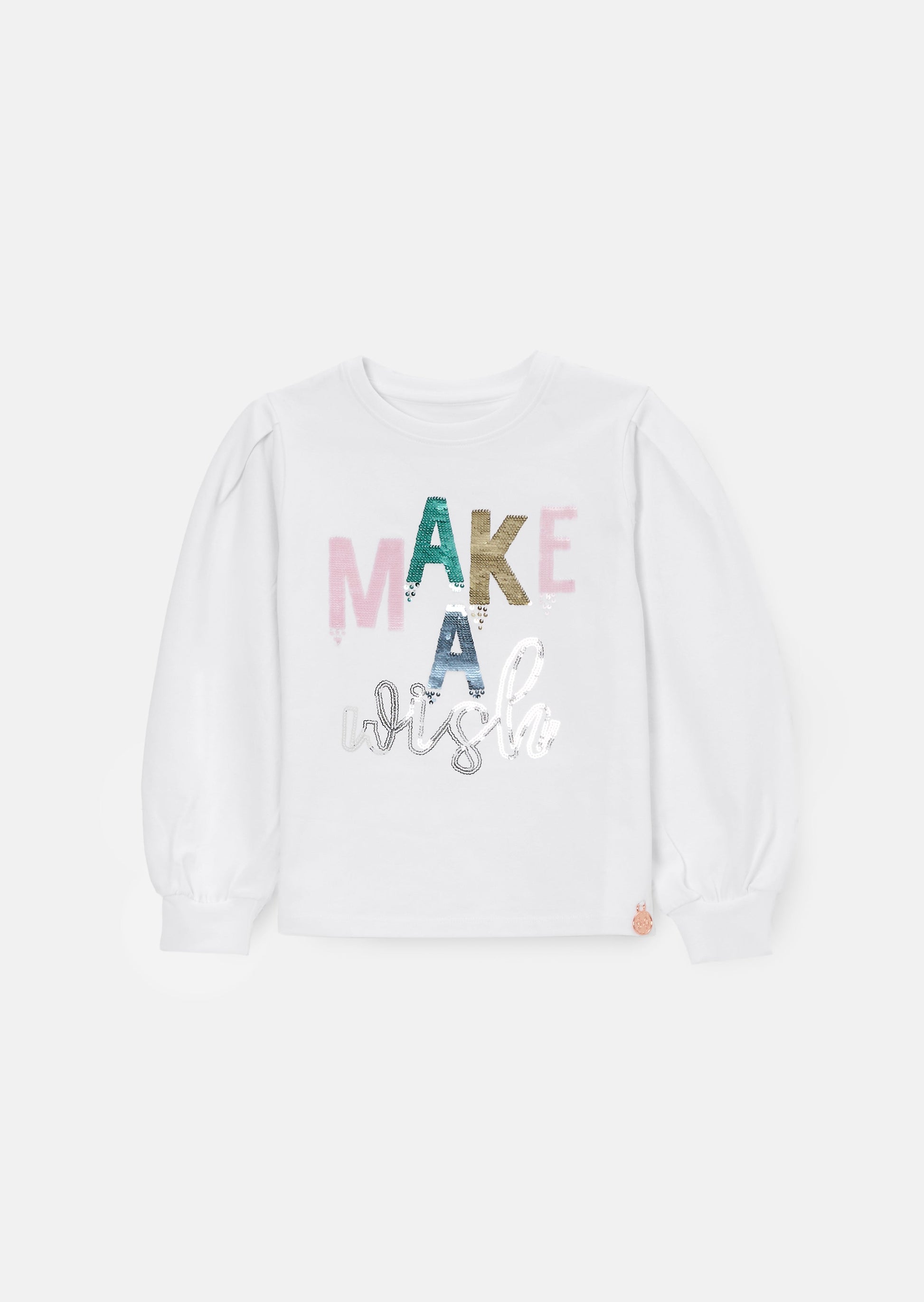 Make a wish and hopefully you'll receive our cute long sleeve Tee. Crafted from the softest cotton jersey and featuring a magical sequin slogan.