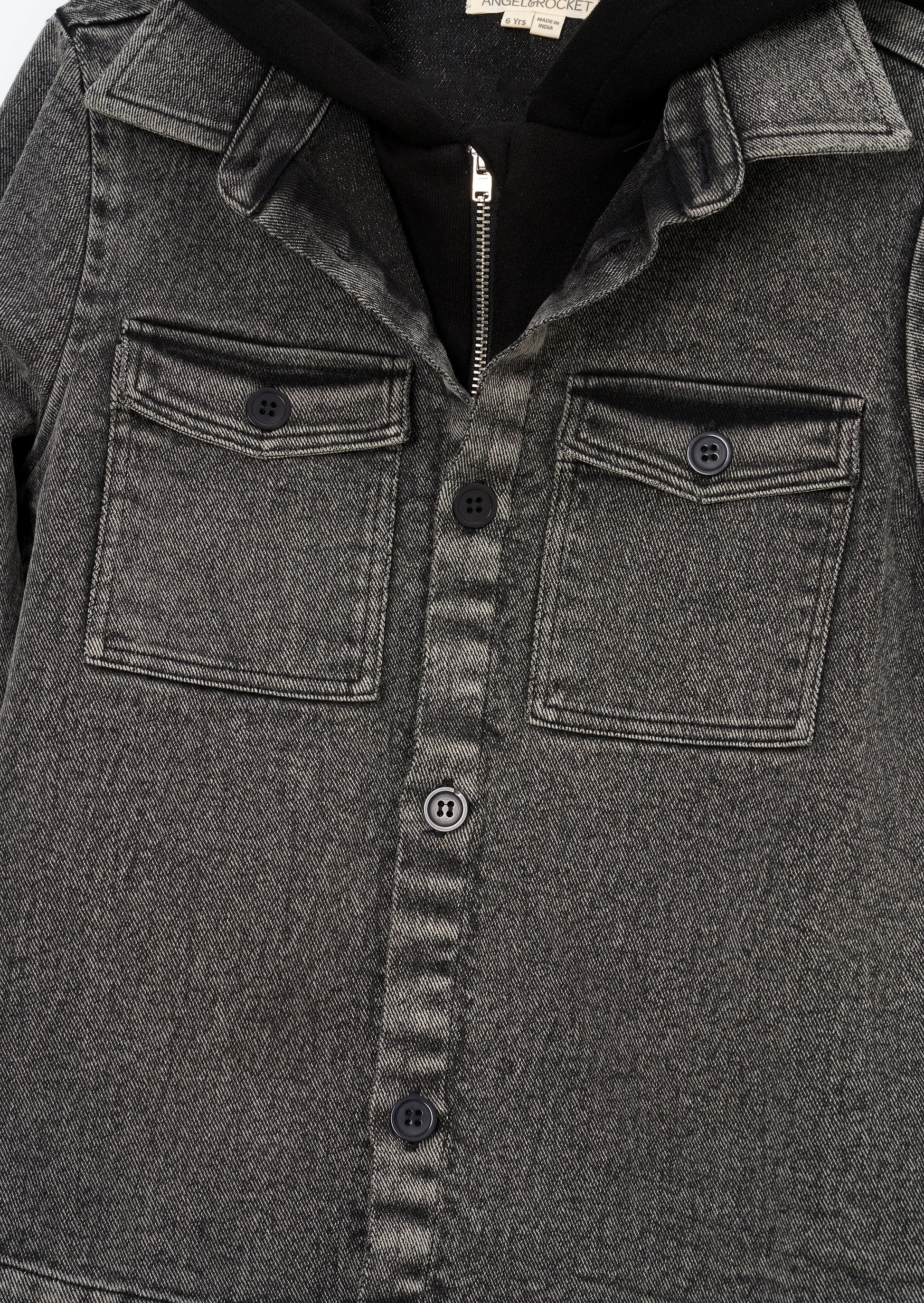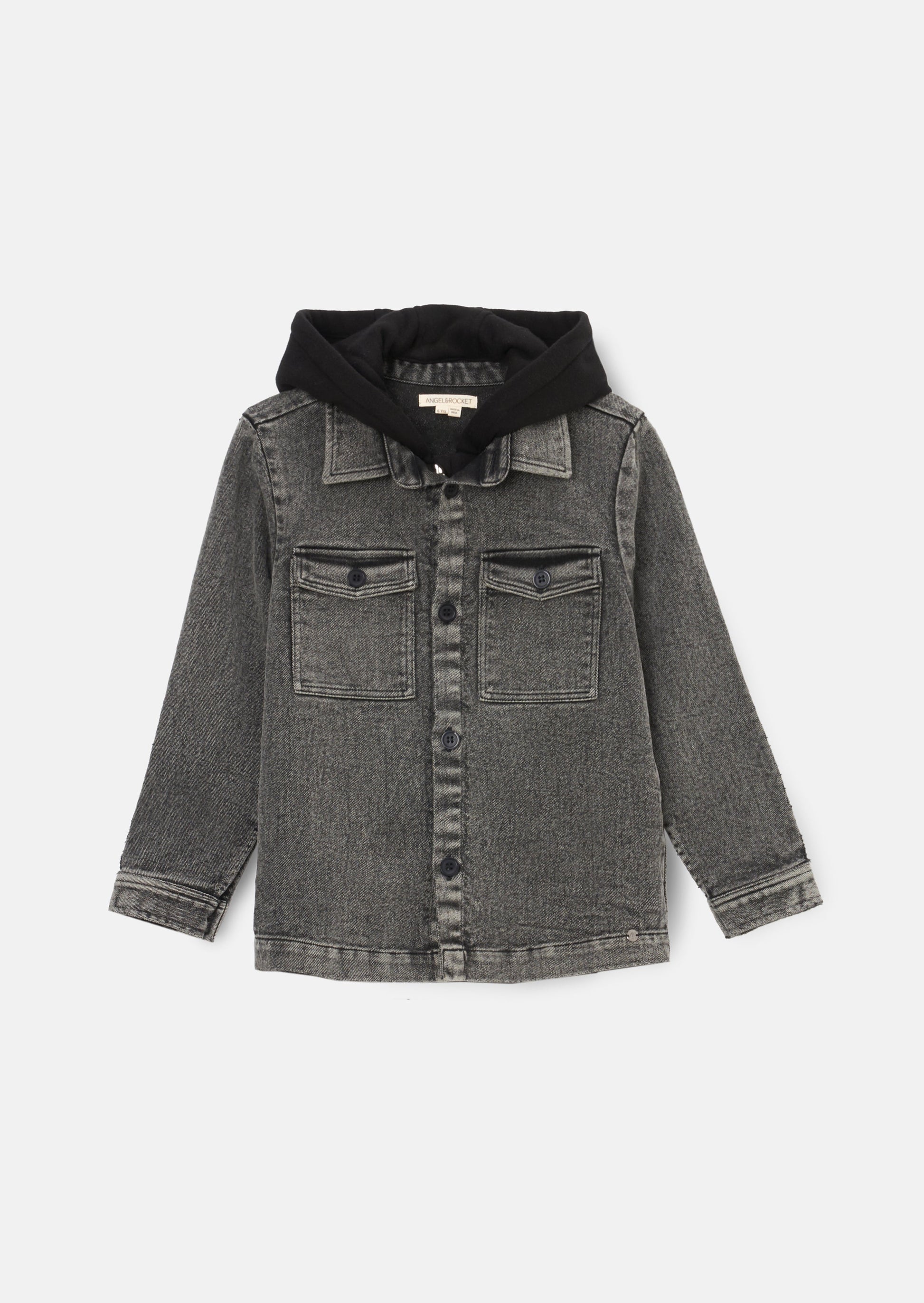 Is it a jacket? Is it a hoodie? It's both! There's no limit to the styling potential of this denim jacket with mock hoodie insert. Crafted from authentic wash denim and featuring a jersey hood. Wear it open or zipped but always stay cosy.
