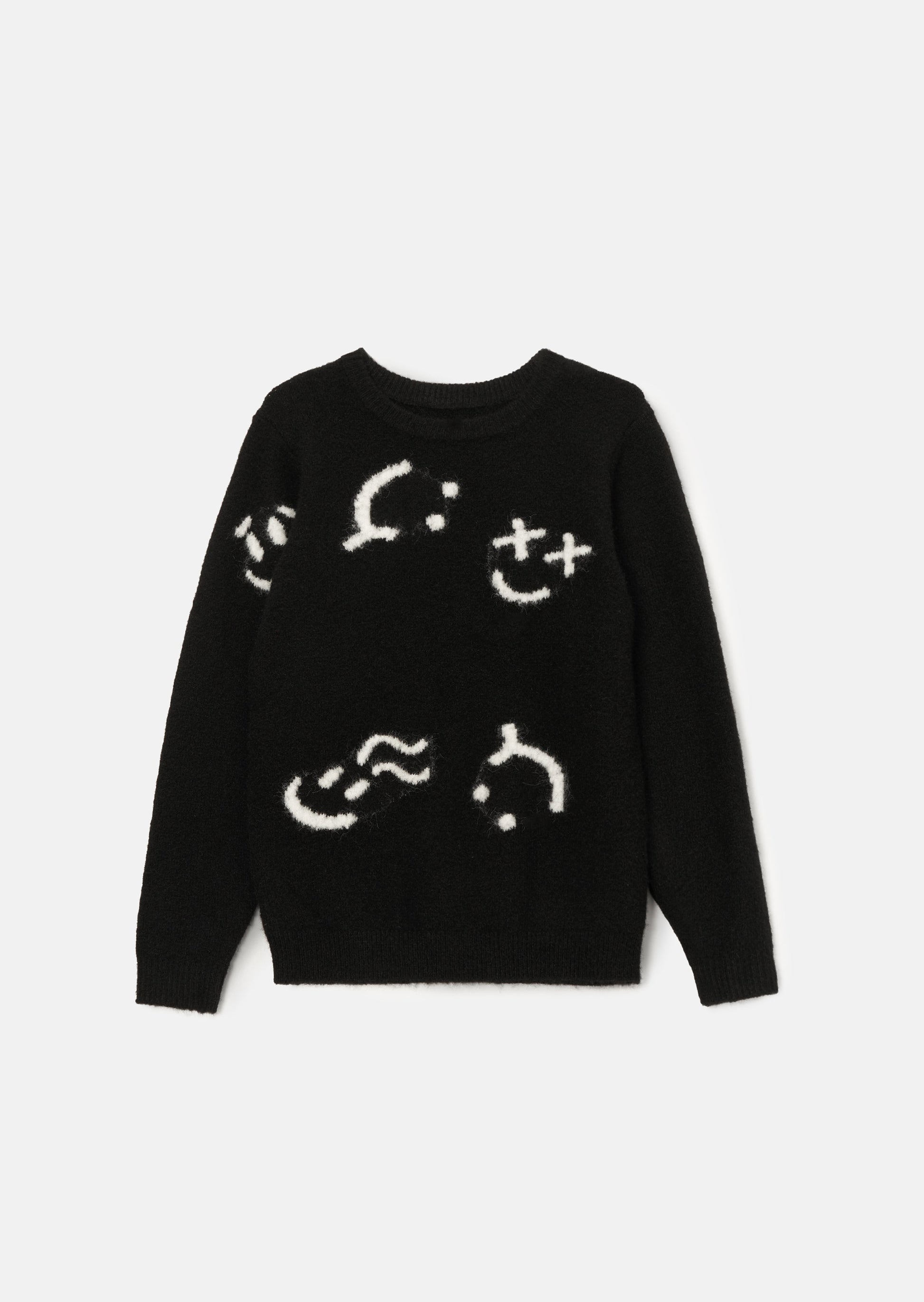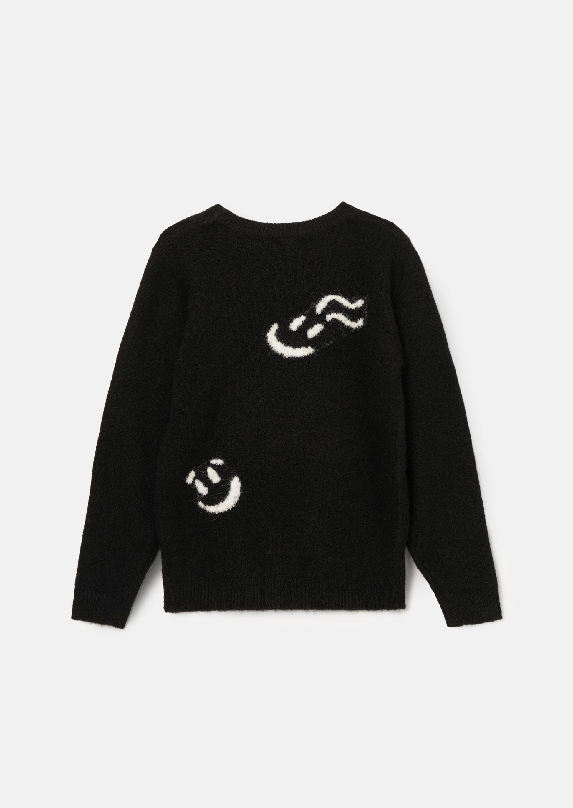 SMILE! We have designed a feel-good knit for their everyday wardrobe. Crafted from ultra-soft snuggly yarn and featuring a graphic smiley motif in stylish monochrome. Warning: they might not want to take it off...
