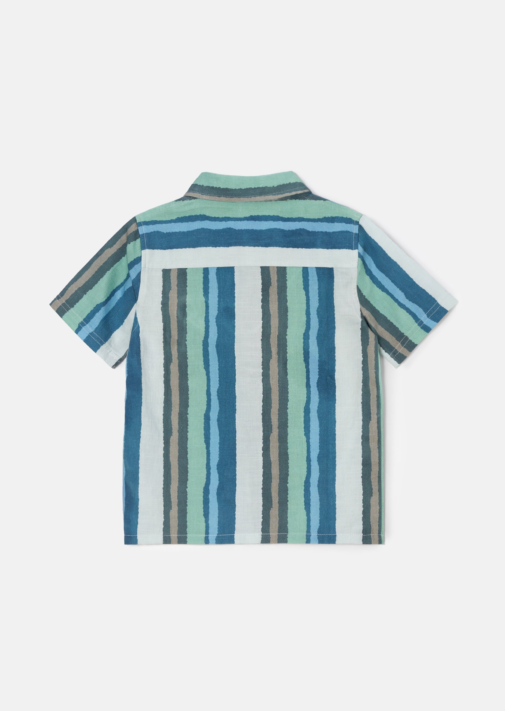 Our boys short sleeve shirt showcases a vibrant design with painted stripes adding a playful and artistic touch to the classic cotton shirt. The short sleeves provide a comfortable style for warmer days.