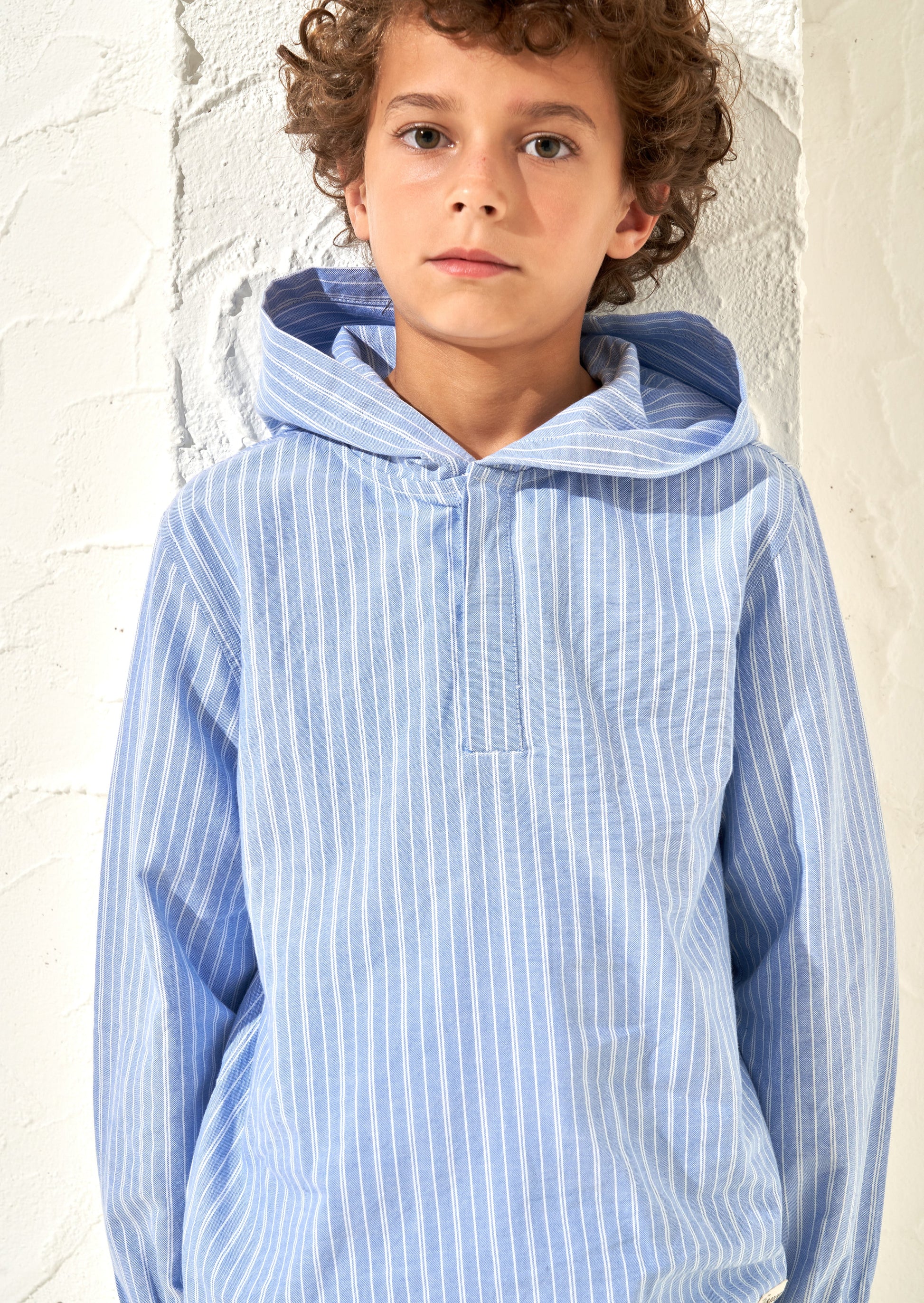 Our new woven stripe hoodie is a stylish addition to any wardrobe. Made from 100% cotton it features a shirting stripe design in classic blue crafted into a casual silhouette with elastic hem and contemporary branding. A clever way to do smart.