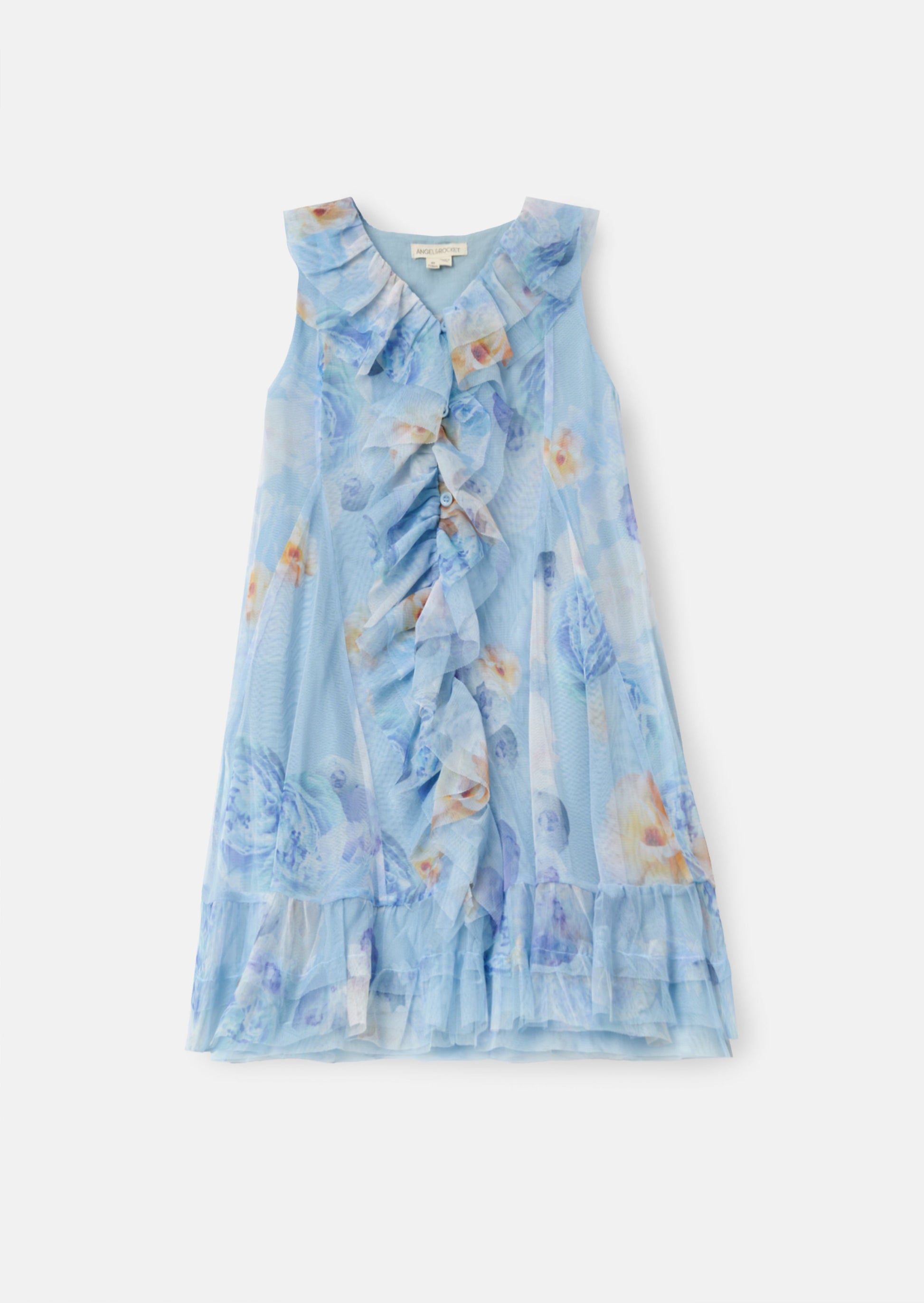 Turn heads this summer in this dreamy blue dress crafted from soft floral mesh. Delicate ruffle details add a touch of elegance, making it light, airy, and ready for every summer occasion. Sheer perfection.
