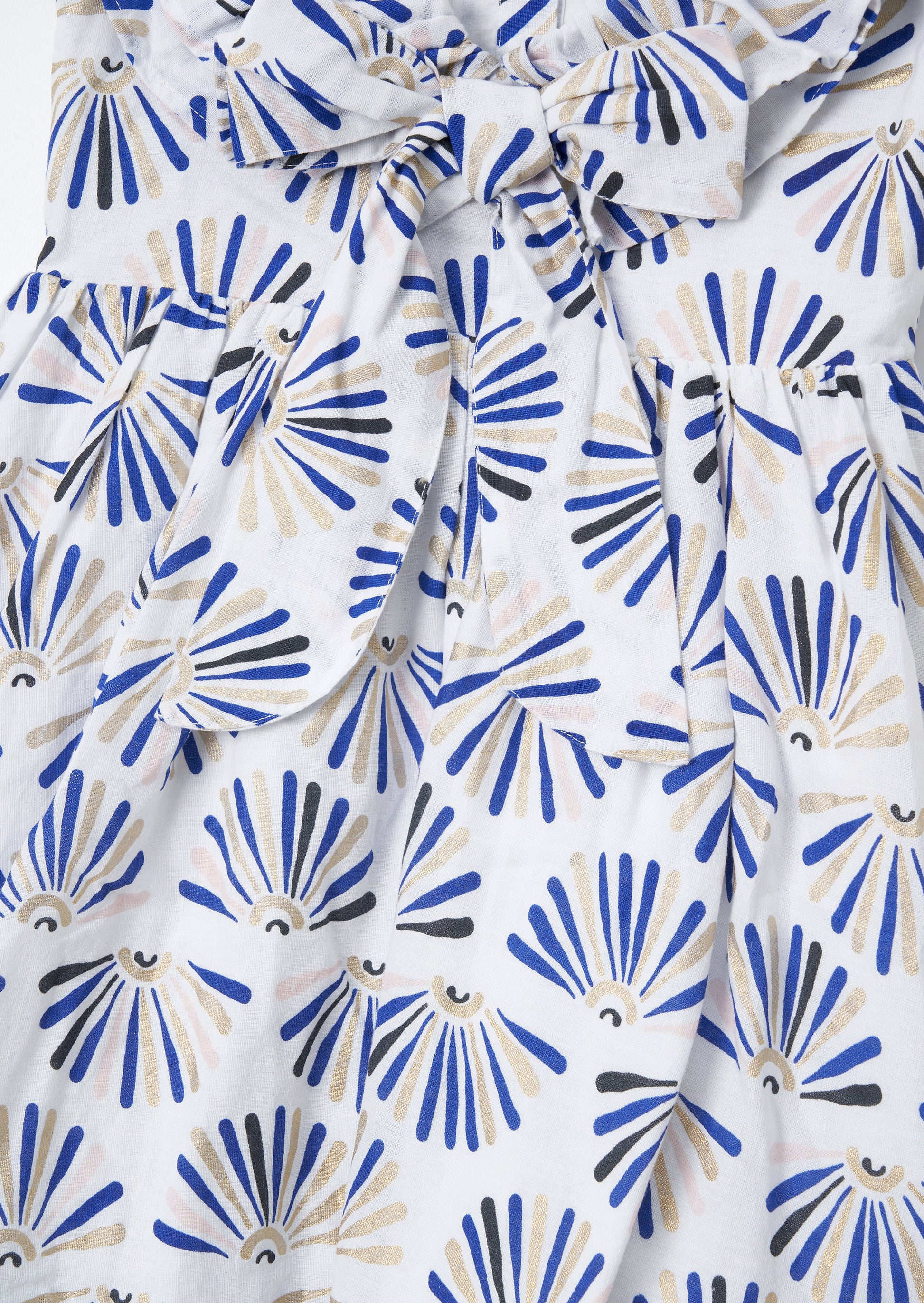 We're the biggest fan of this dress! Made from soft, breezy fabric in our statement fan print, it features layers of frills along the neckline and a playful bow at the back. Just perfect for sunny days!