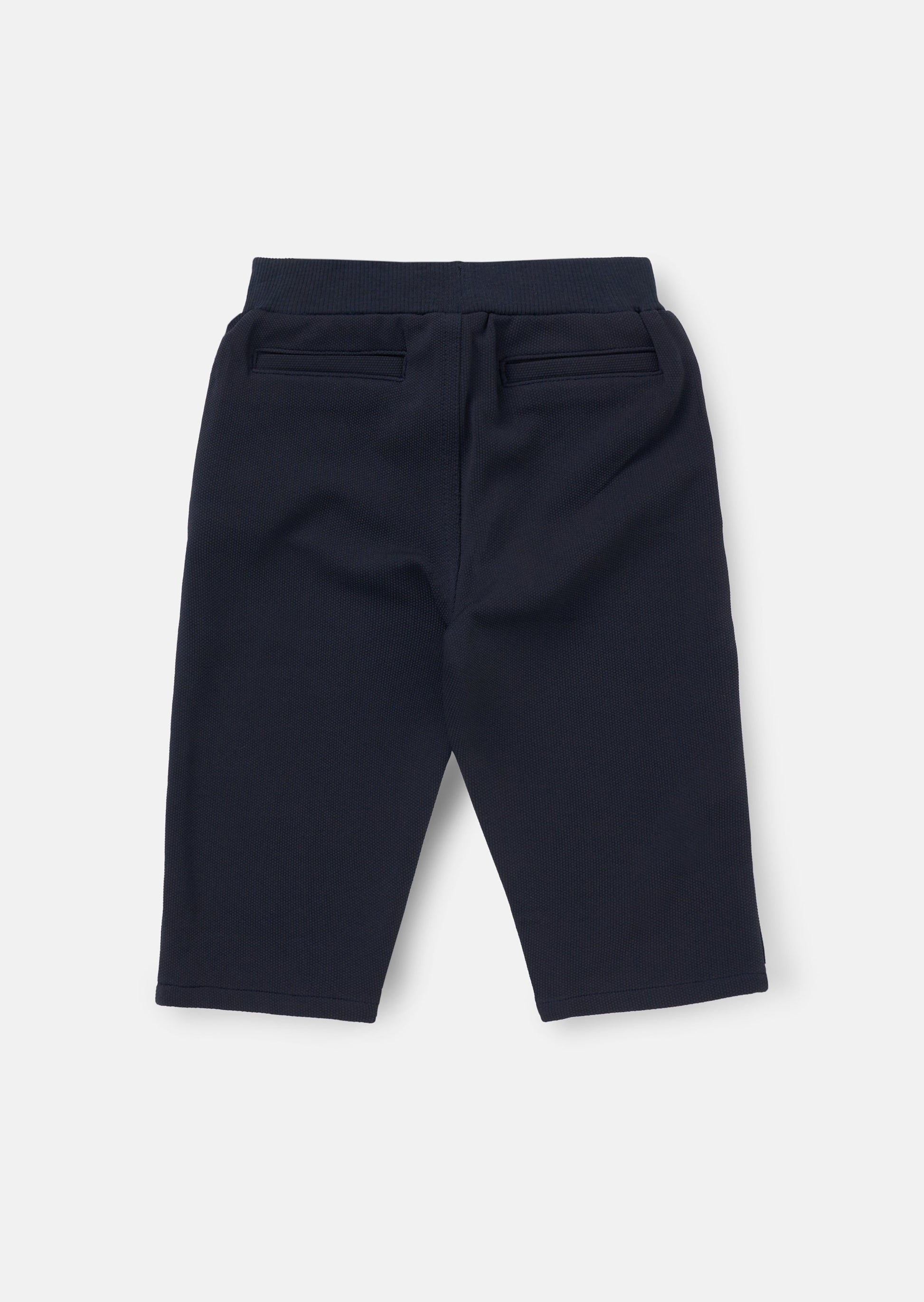 These soft navy textured trousers are perfect for everyday wear. With cargo pockets, an elasticated waist and cuffs, and a contrast drawcord, they offer comfort and style for all your little one’s adventures.