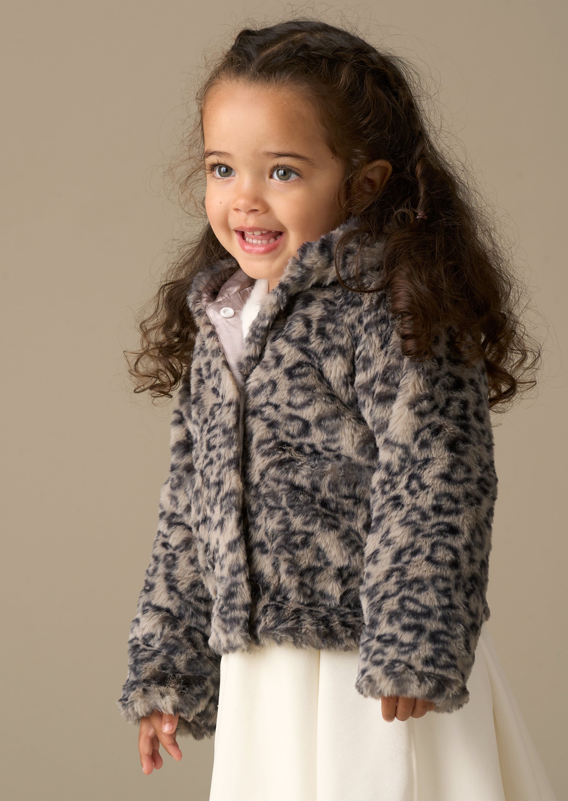 This soft and snuggly leopard print jacket is perfect for keeping warm on chilly days. With its cosy hood and plush feel, it's just right for little adventures—and guaranteed to bring the cuteness wherever they go.