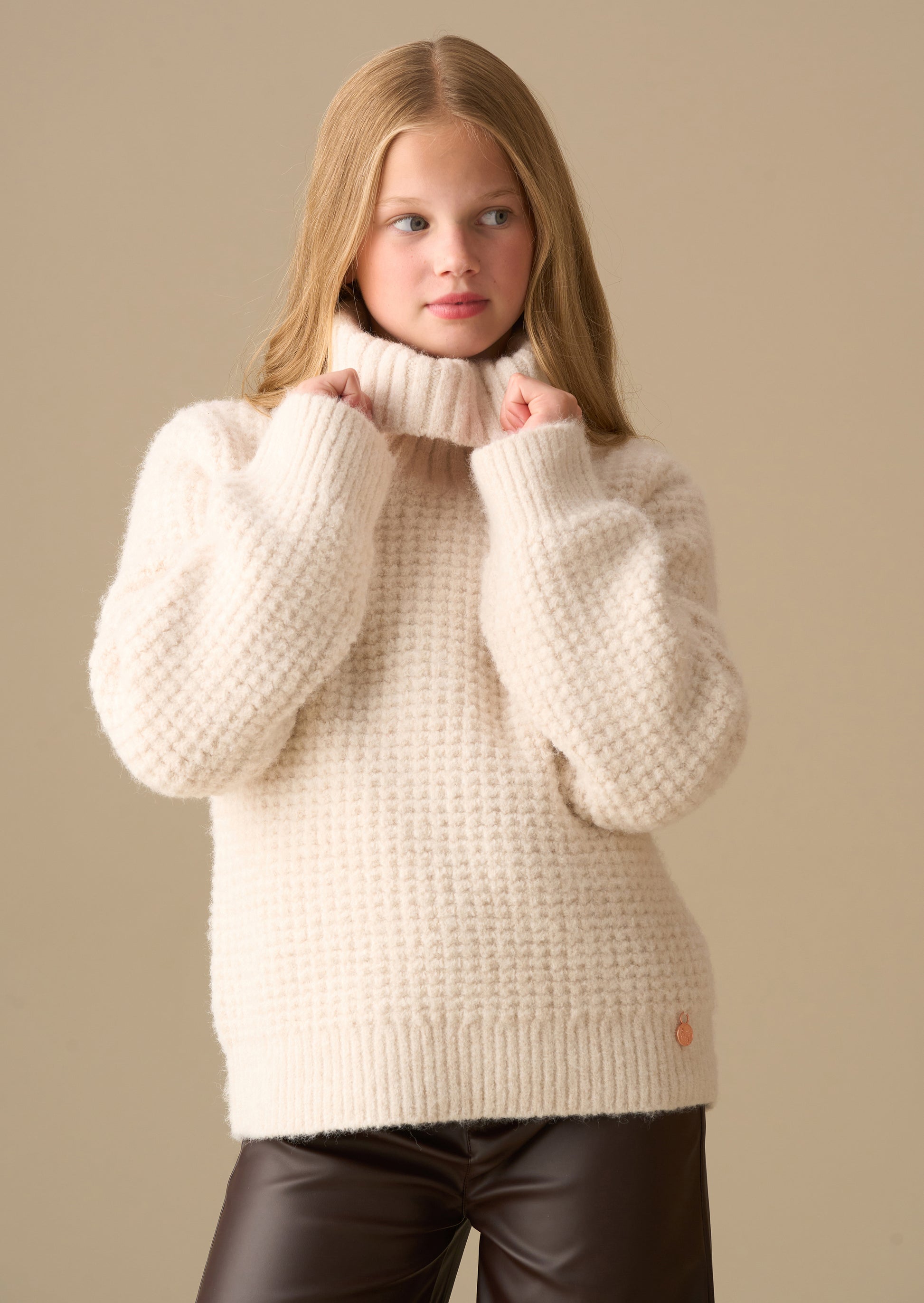 Snug in Style! Our chunky cream waffle-knit jumper is a winter wardrobe essential. With its oversized roll neck and relaxed fit, it's made for layering, lounging, and staying warm in style. Super soft and effortlessly cool!