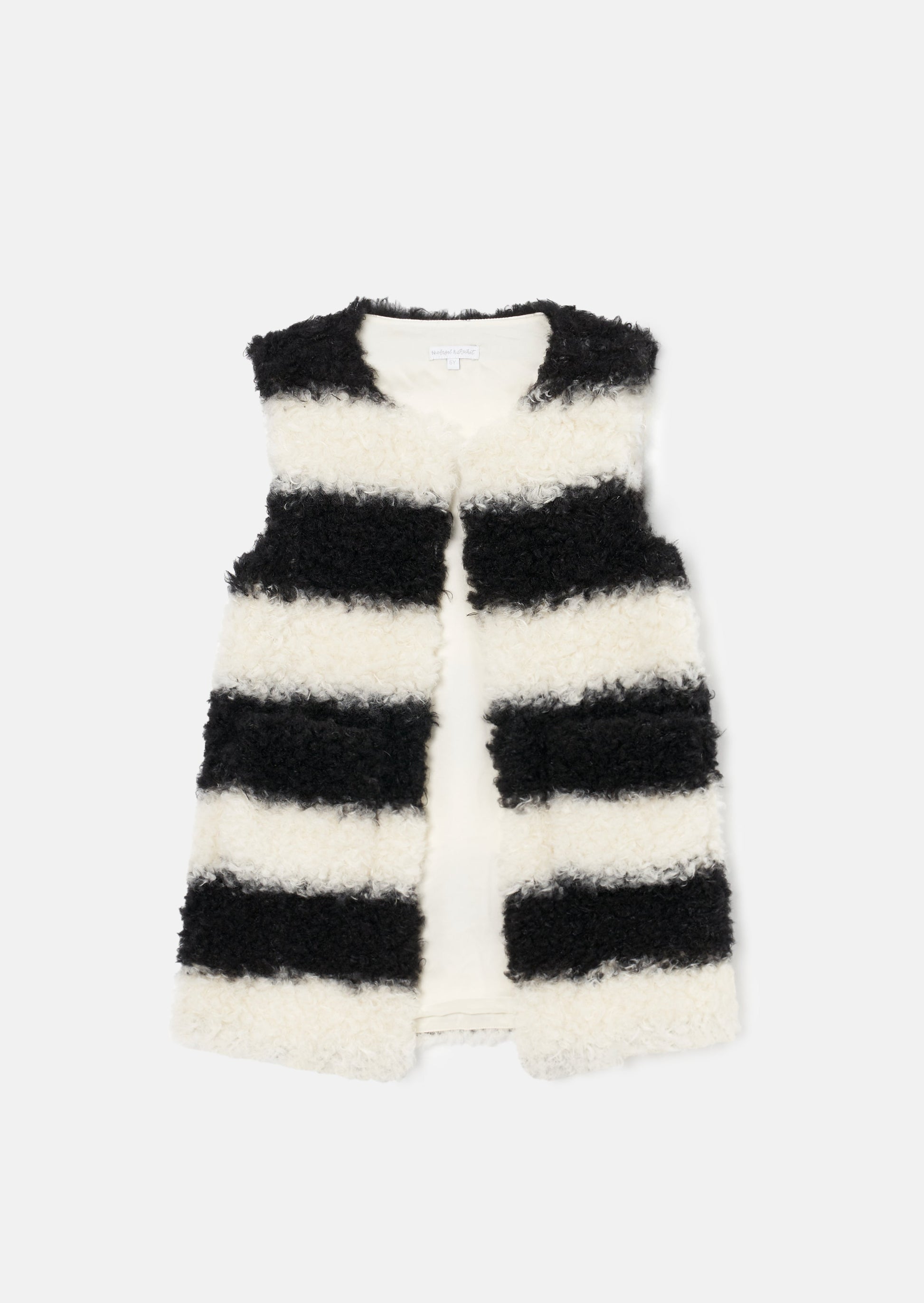 A minimalist cut with maximum impact. This longline gilet is crafted from style-statement shearling in striking black and ecru stripes. Wear with our band tee for maximum style credits!