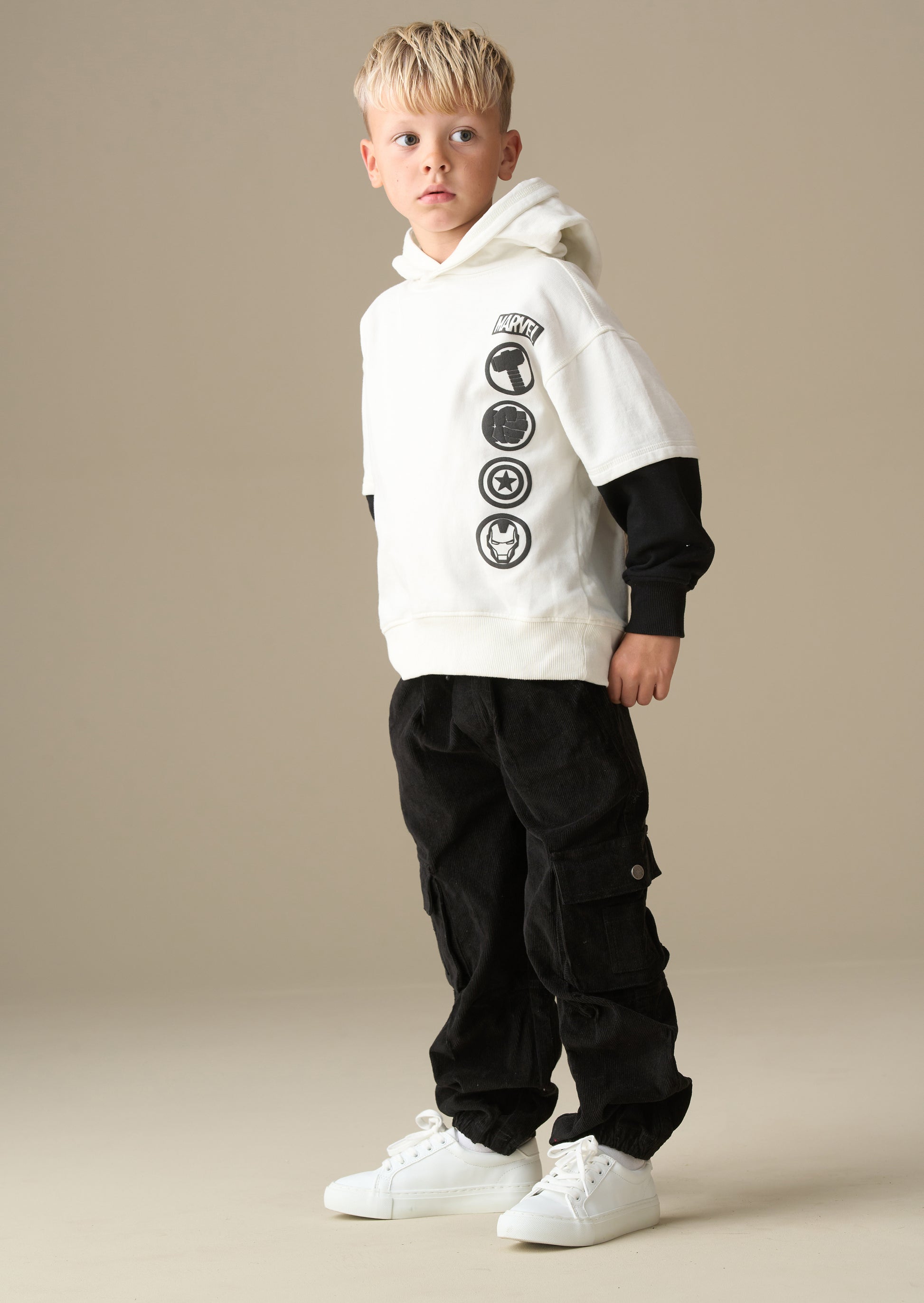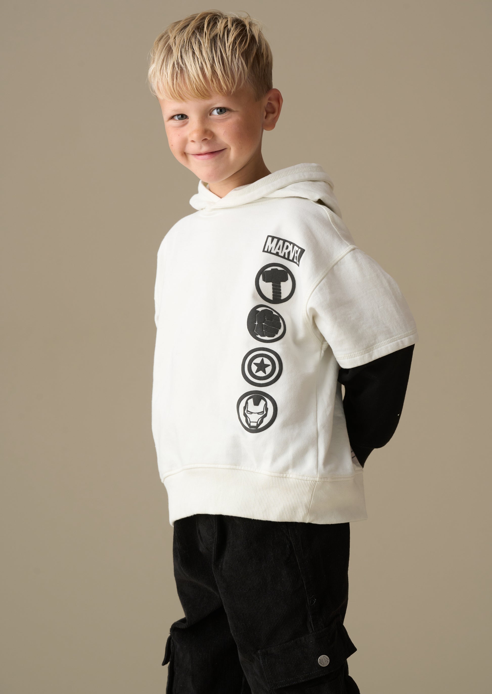 Angel & Rocket meets Marvel and is sure to be a favourite with all superheroes. Our Marvel hoody with double layer sleeve detail in super soft cotton jersey is MARVELlous!
