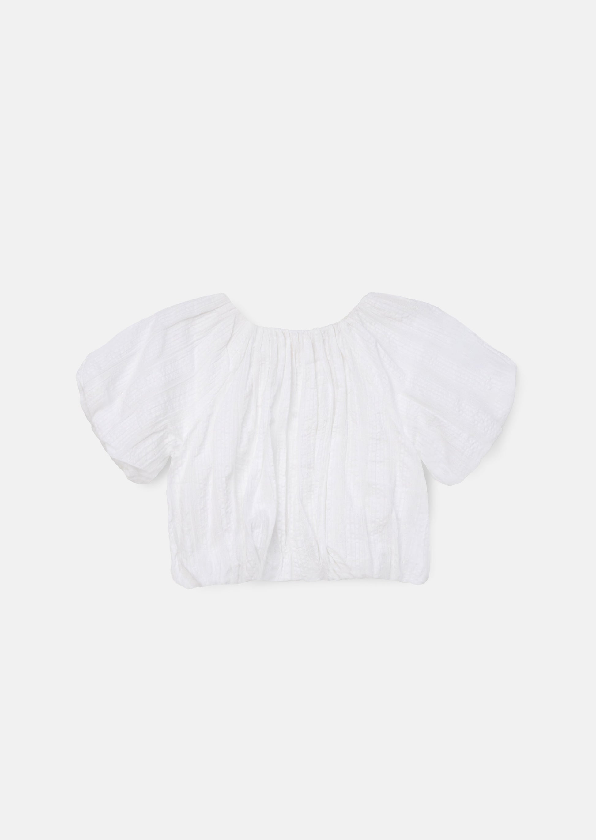 Meet your new favourite top! Crafted from textured white cotton featuring billowy blouson sleeves and on-trend puffball hem. Pair with EVERYTHING.