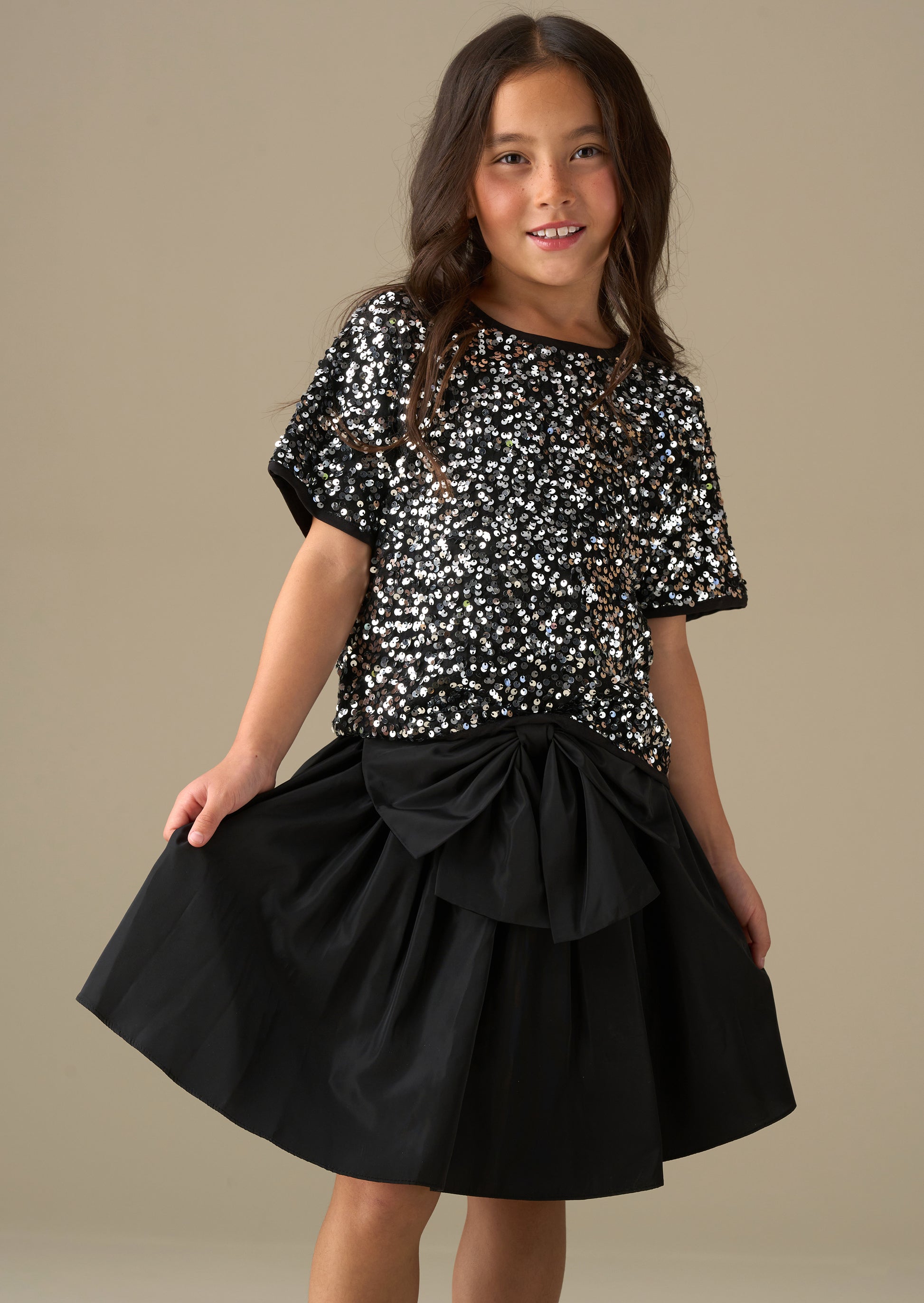Meet the perfect skirt for party-twirling! Crafted in a luxe fabric to shimmer through the party season with an oversized bow at the waist to add extra style factor.