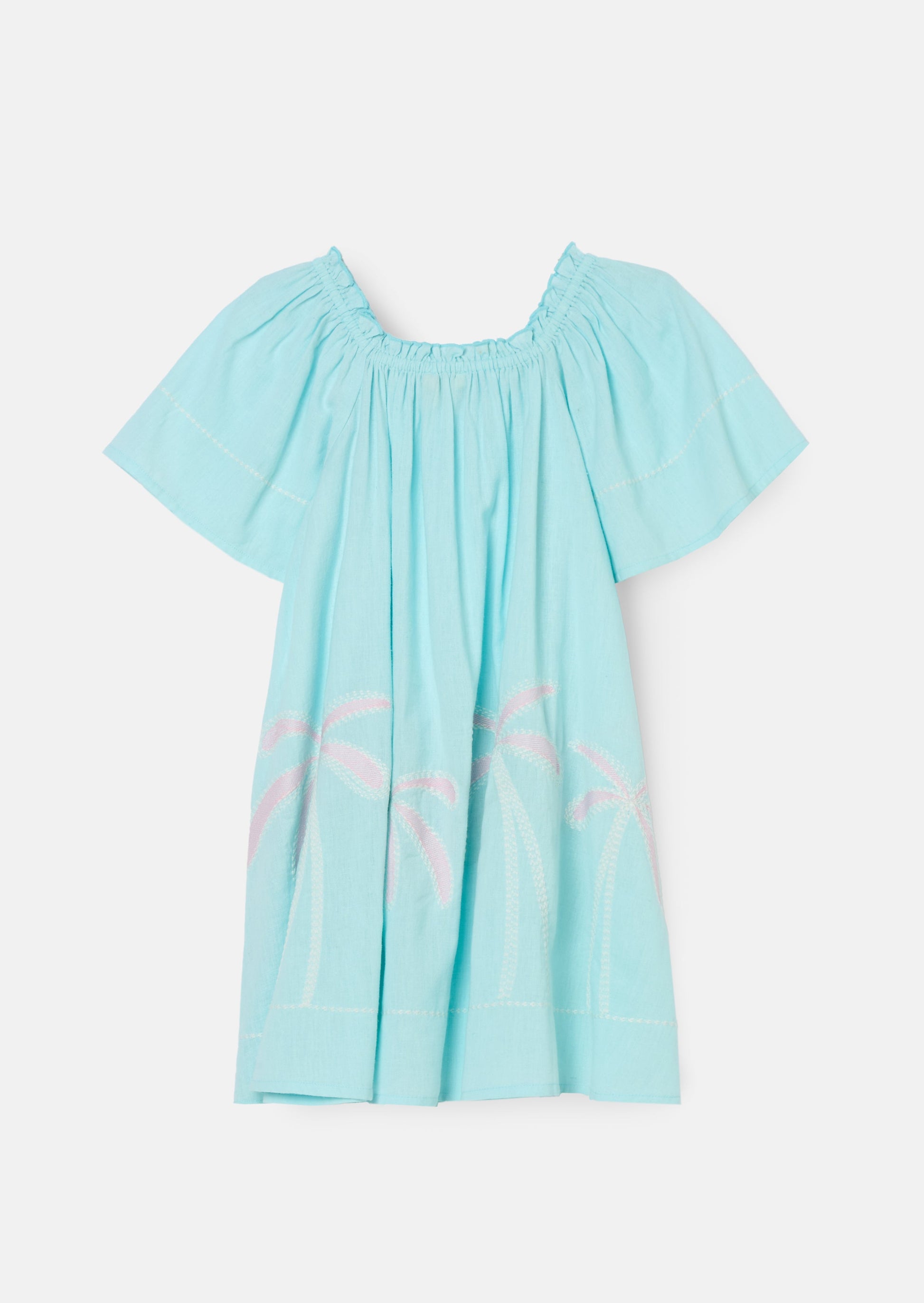 Swing into summer in style! This soft cotton sundress features playful embroidered palm trees in a gorgeous summer blue. An effortlessly cool choice for sunny days.