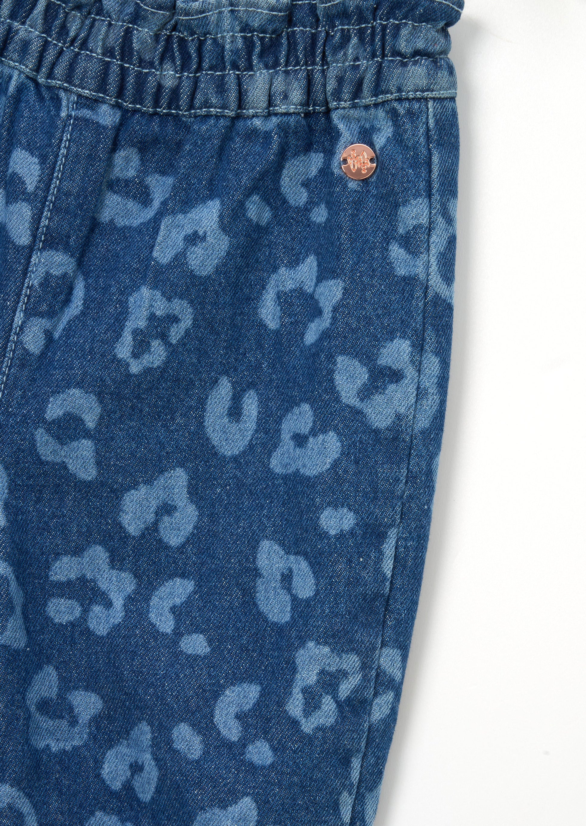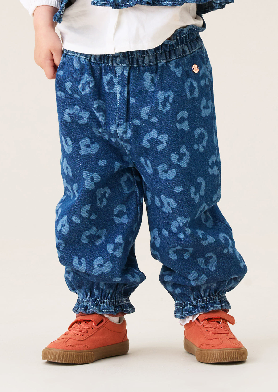 Great style starts early! We're wild about these laser leopard print denim trousers, jersey lined for extra softness and finished with a comfy shirred waist for easy dressing. Pair with the big sister trousers for a fabulous matching look!