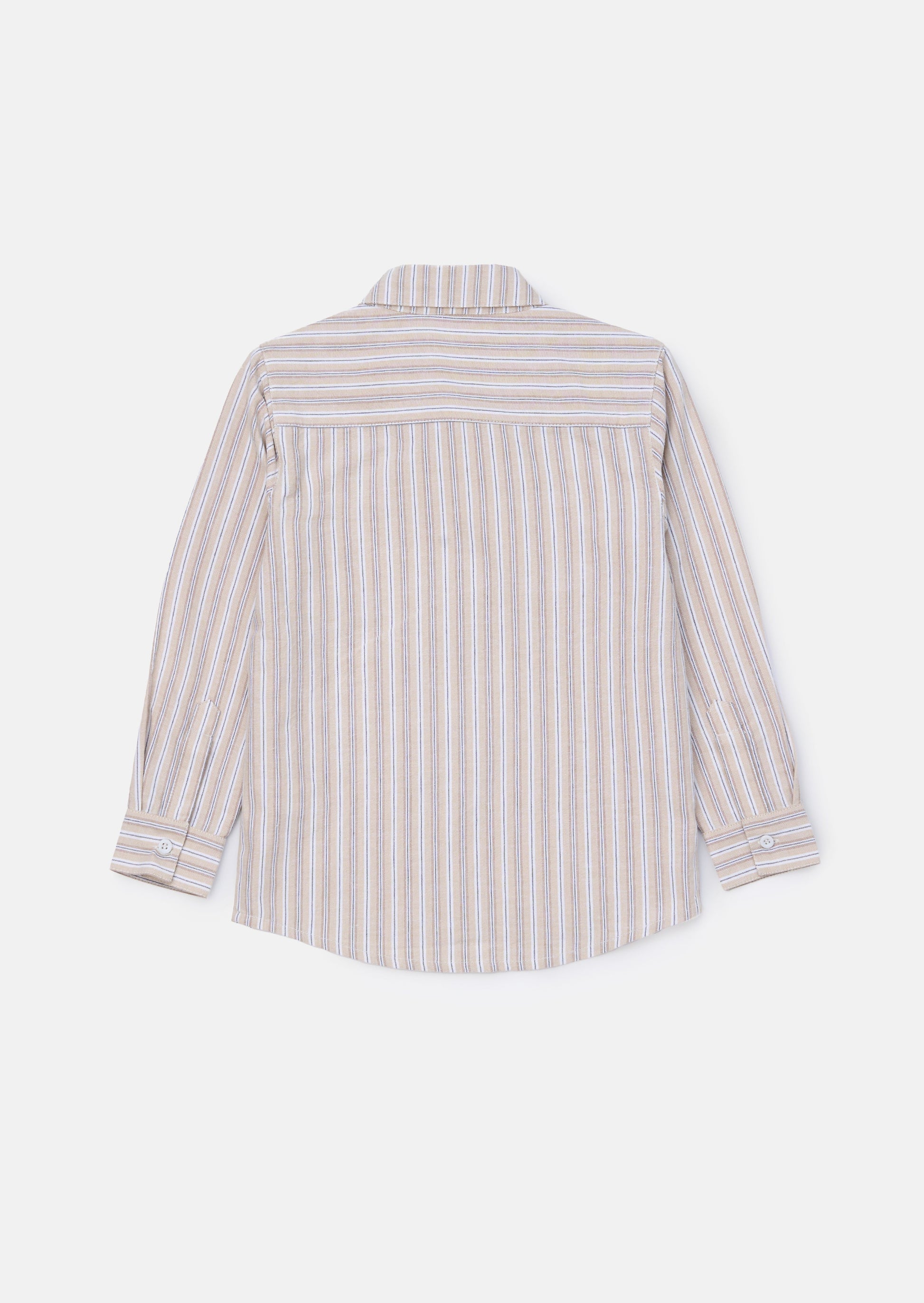 Earn your stripes! Our new stripe shirt is crafted from classic Oxford cotton for a smart, polished look. The regular cut, button-down collar, and versatile stone colourway make it a go-to for effortless summer styling. Pair it with our textured chinos for a sharp and stylish outfit.