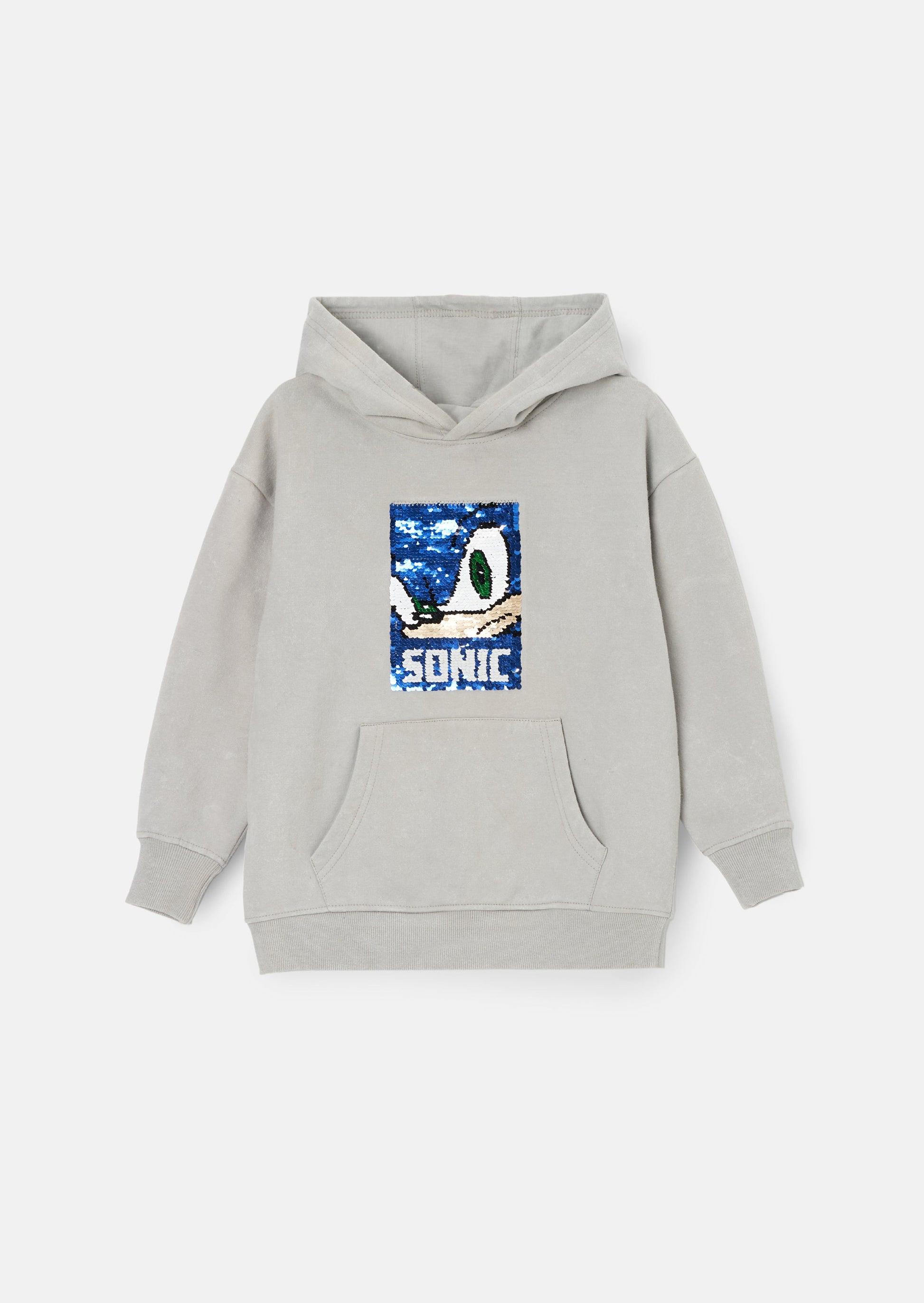 A hedgehog becomes a hero. Level up in our new Sonic hoodie in super soft cotton jersey with statement reversible sequin design. Let's roll!
