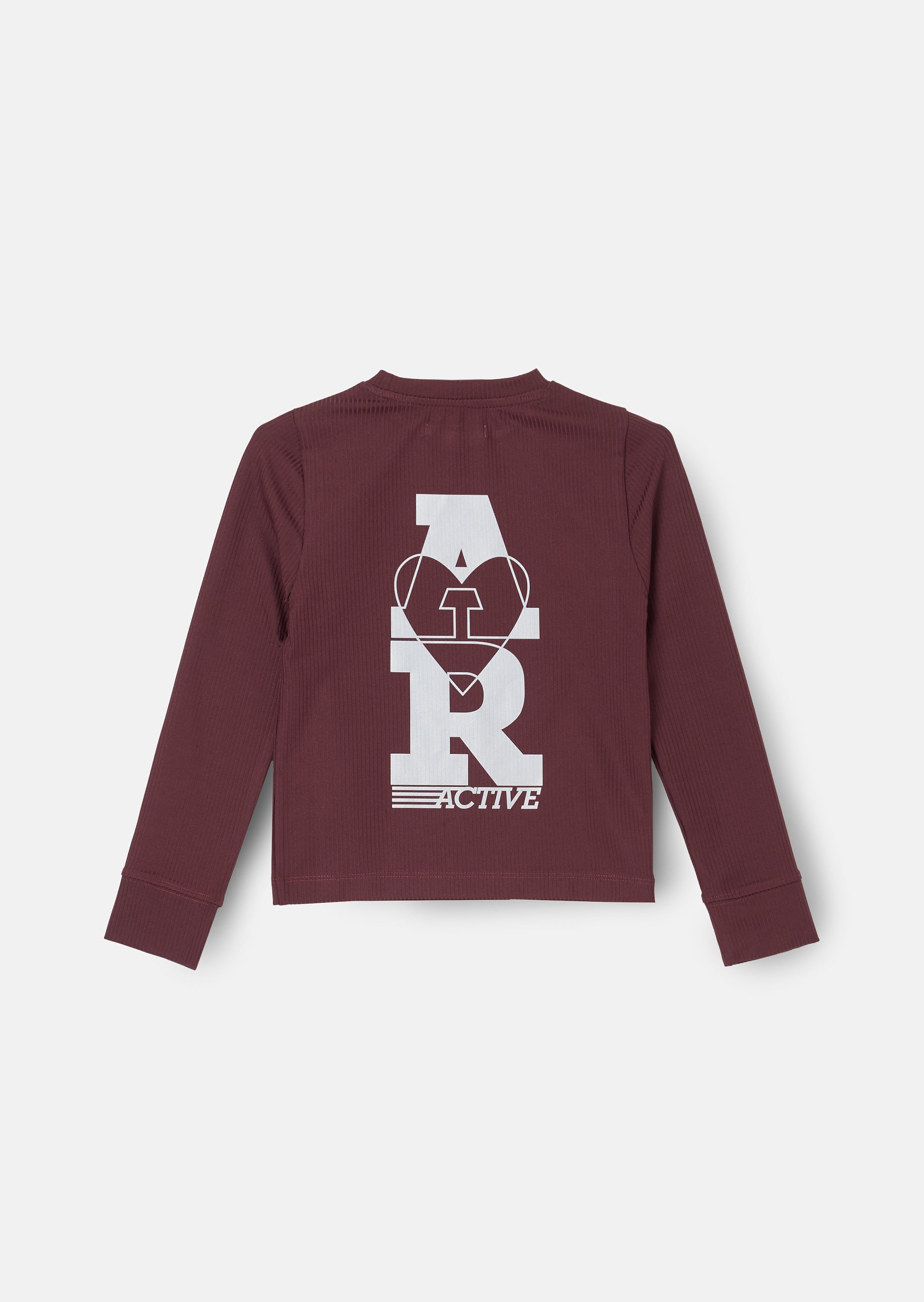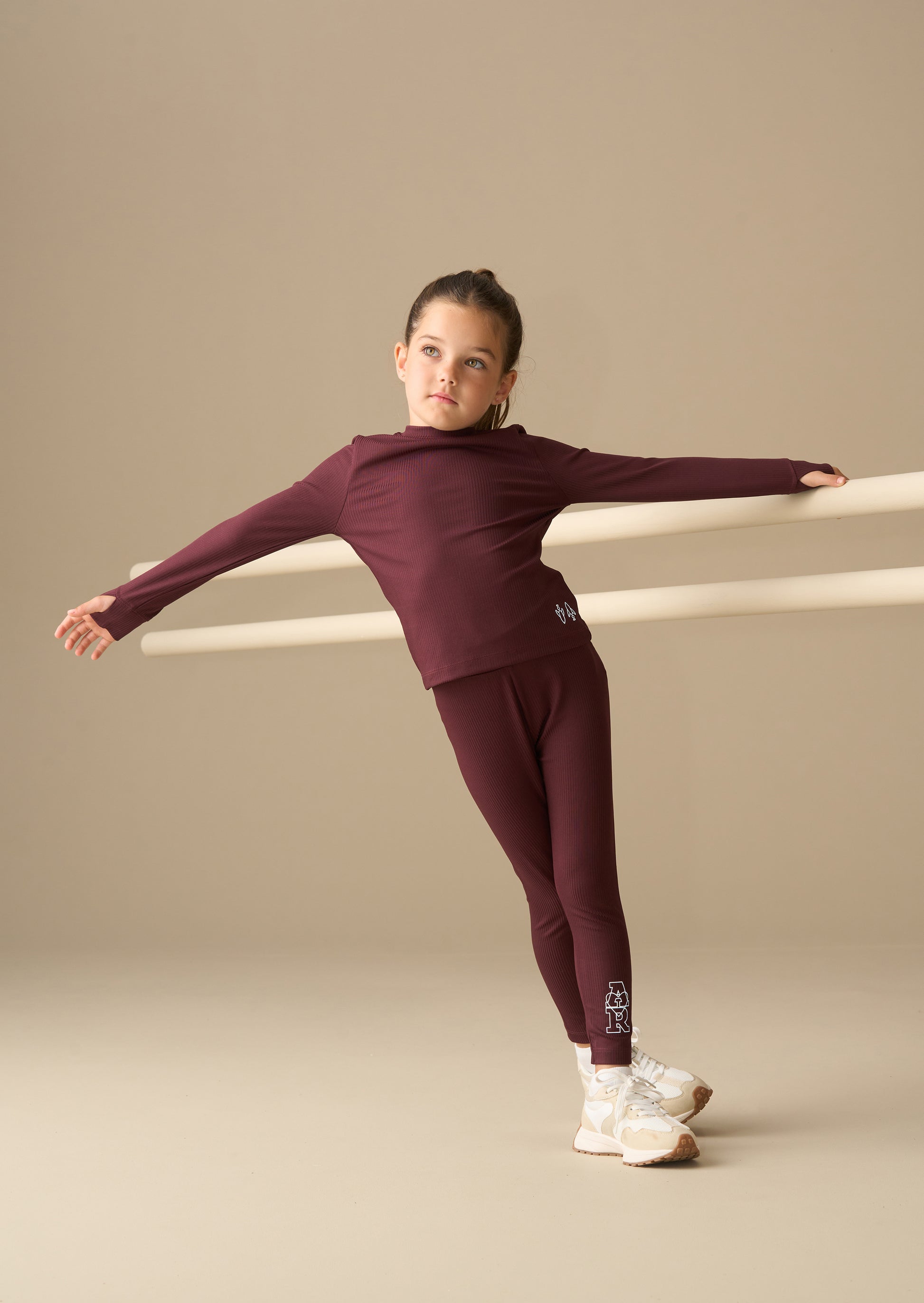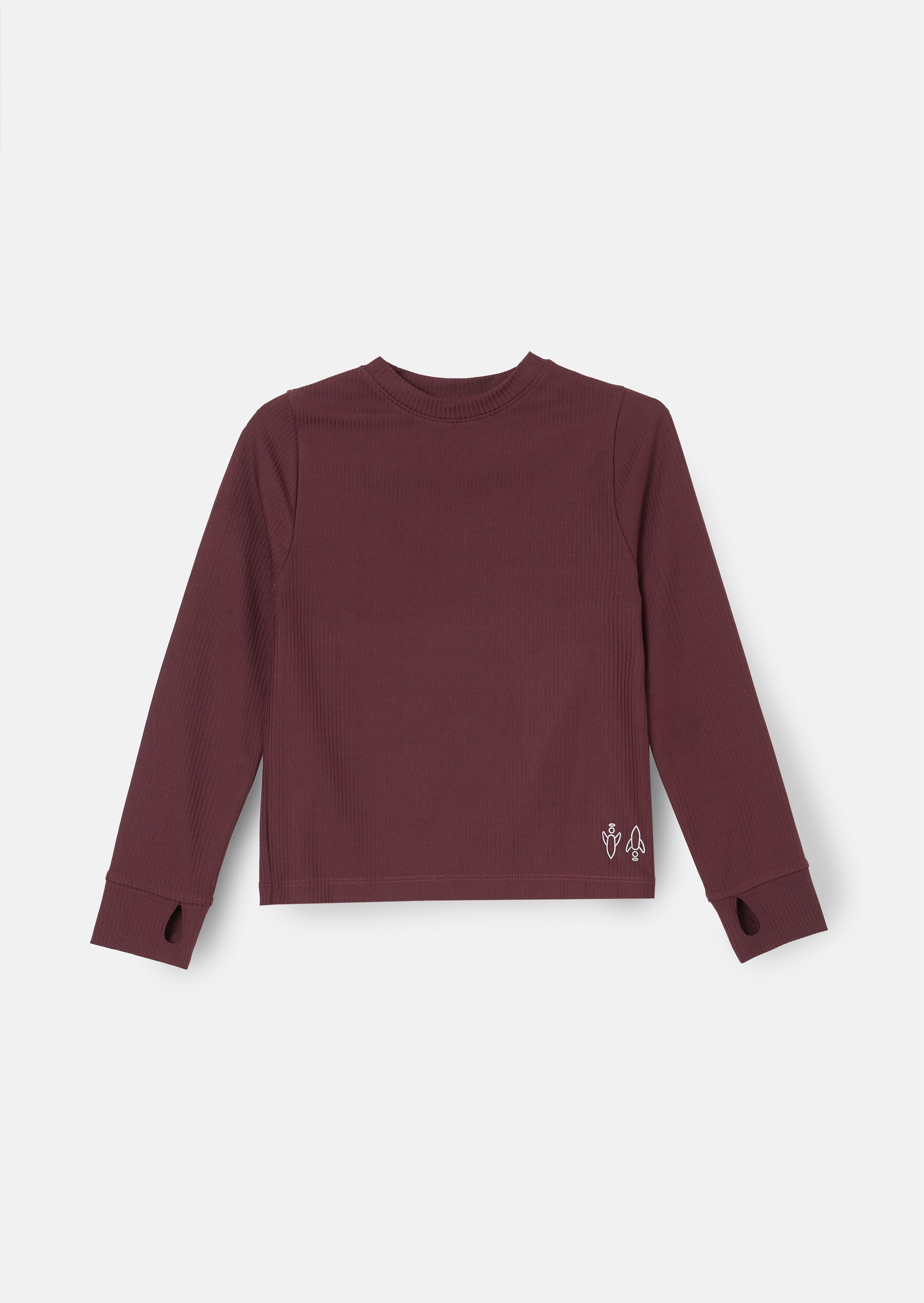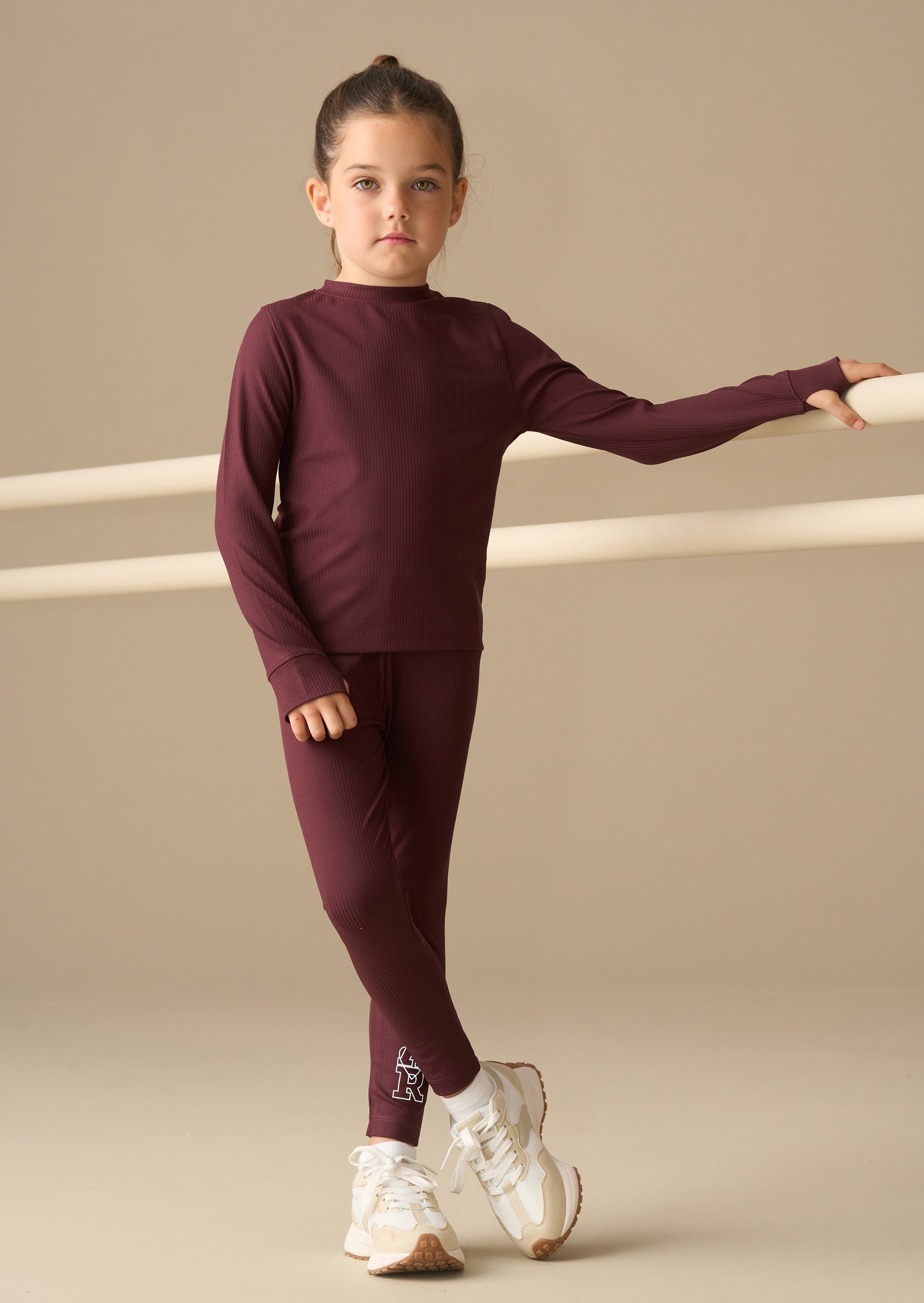 Move in style! This burgundy ribbed top is made for nonstop fun — soft, stretchy, and comfy all day, with a cool reflective print on the back for extra shine when they're on the move! Style it with the matching leggings for a look that's perfect for sporty days, chill time, and everything in between.